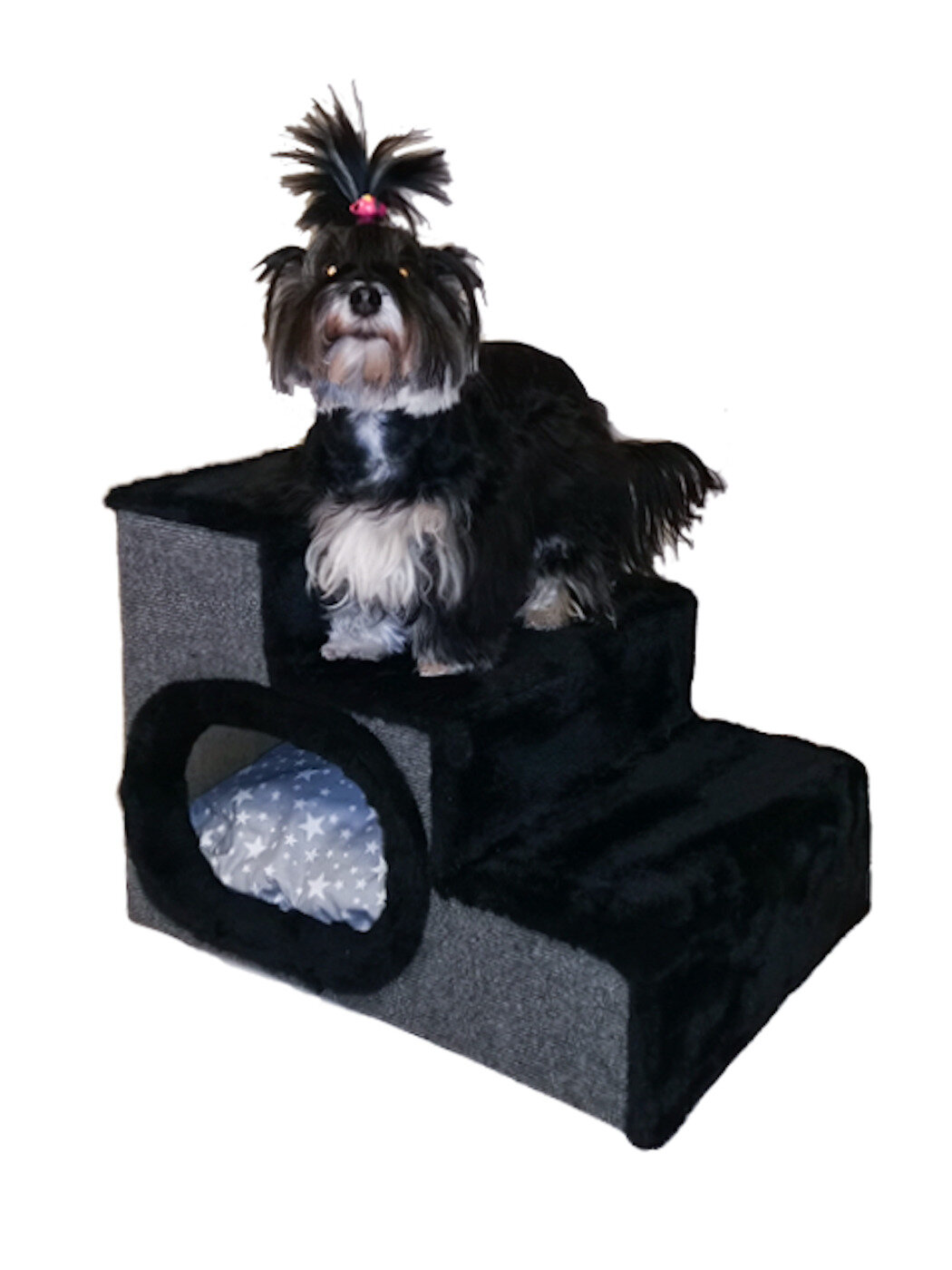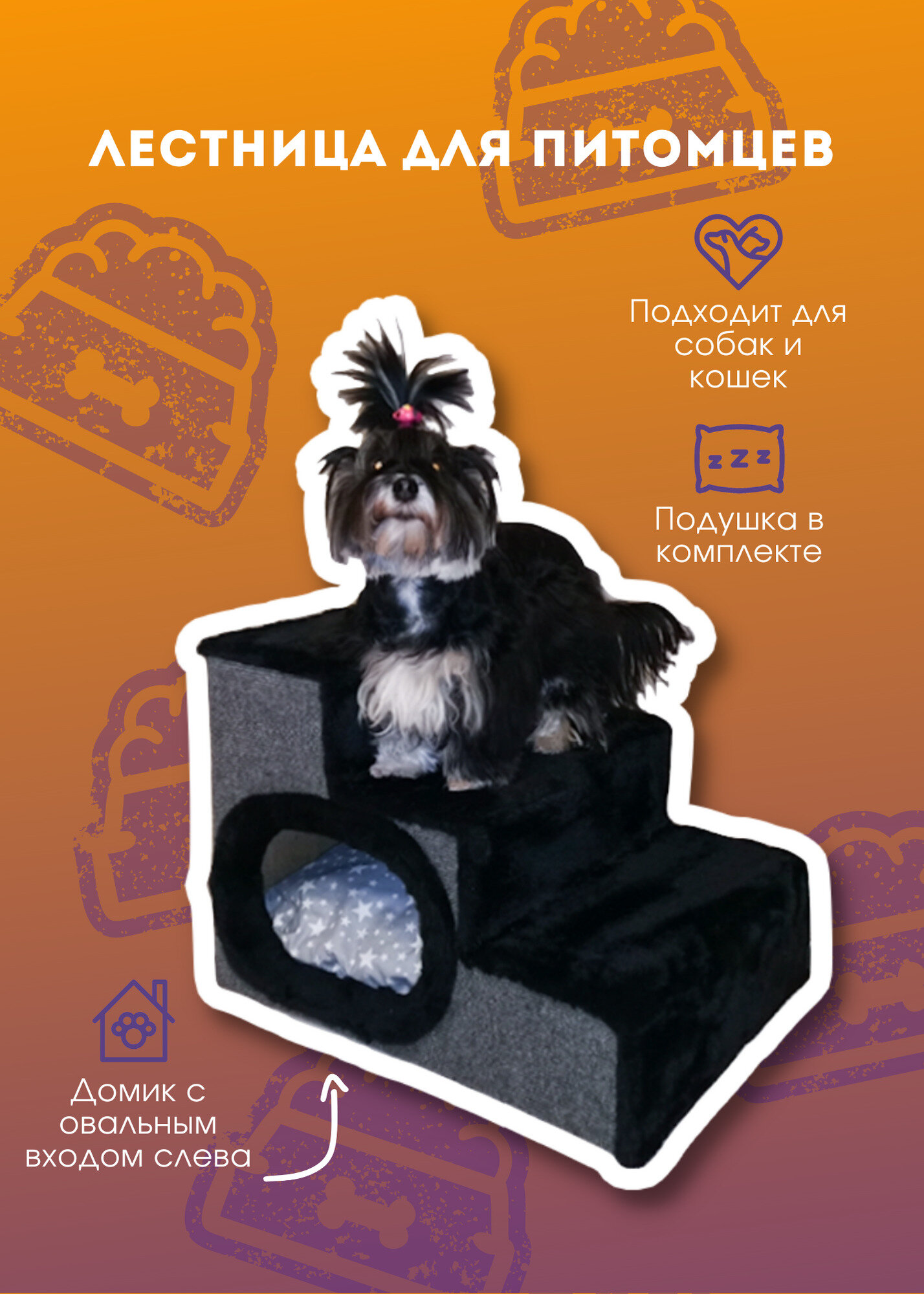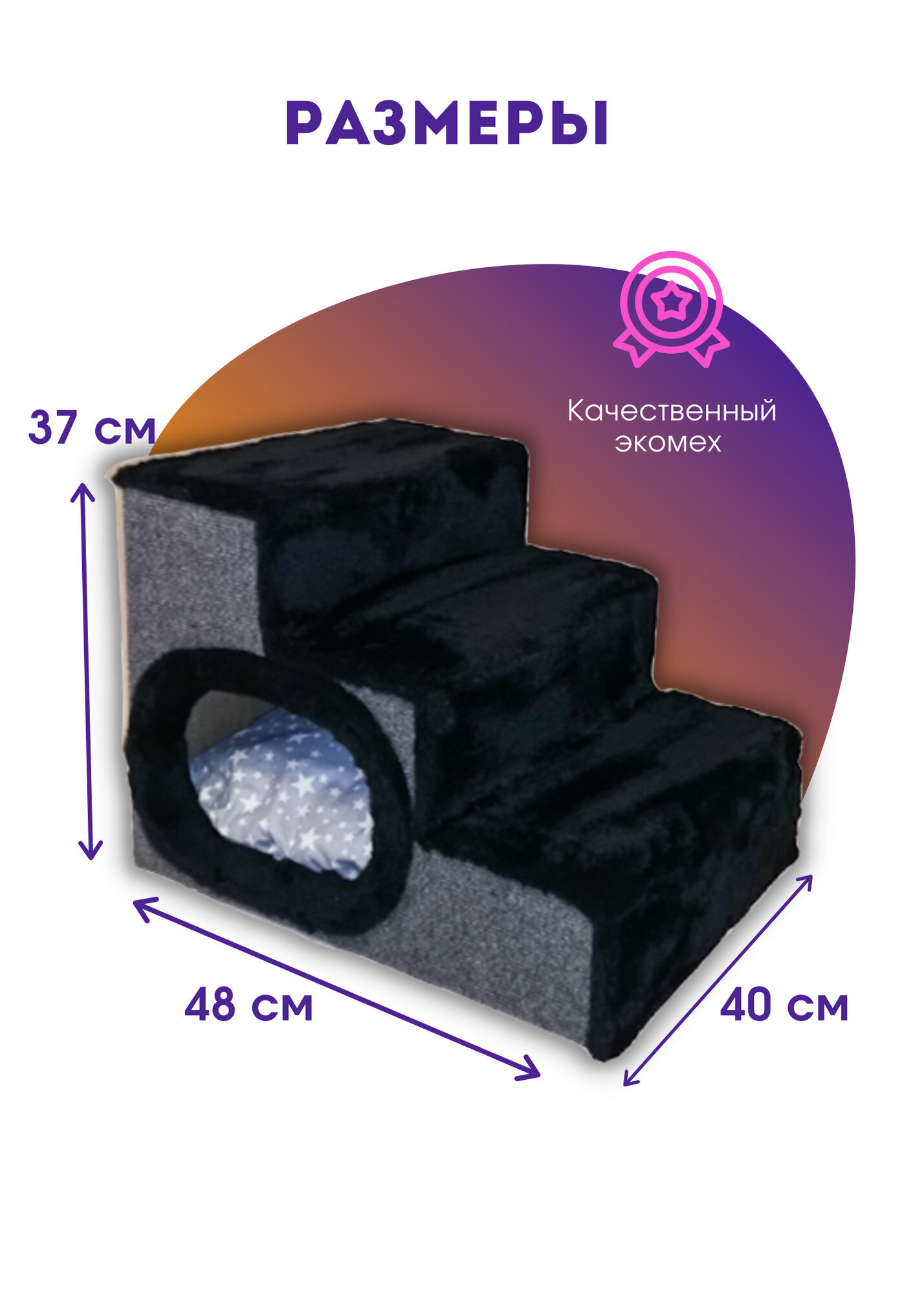 Лестница прикроватная для питомцев с домиком, три ступени, овальный вход слева, подушка в комплекте, черный, 40*37*48 см: сравнение цен, характеристики, фото, актуальное наличие и цены.