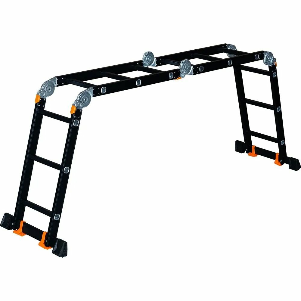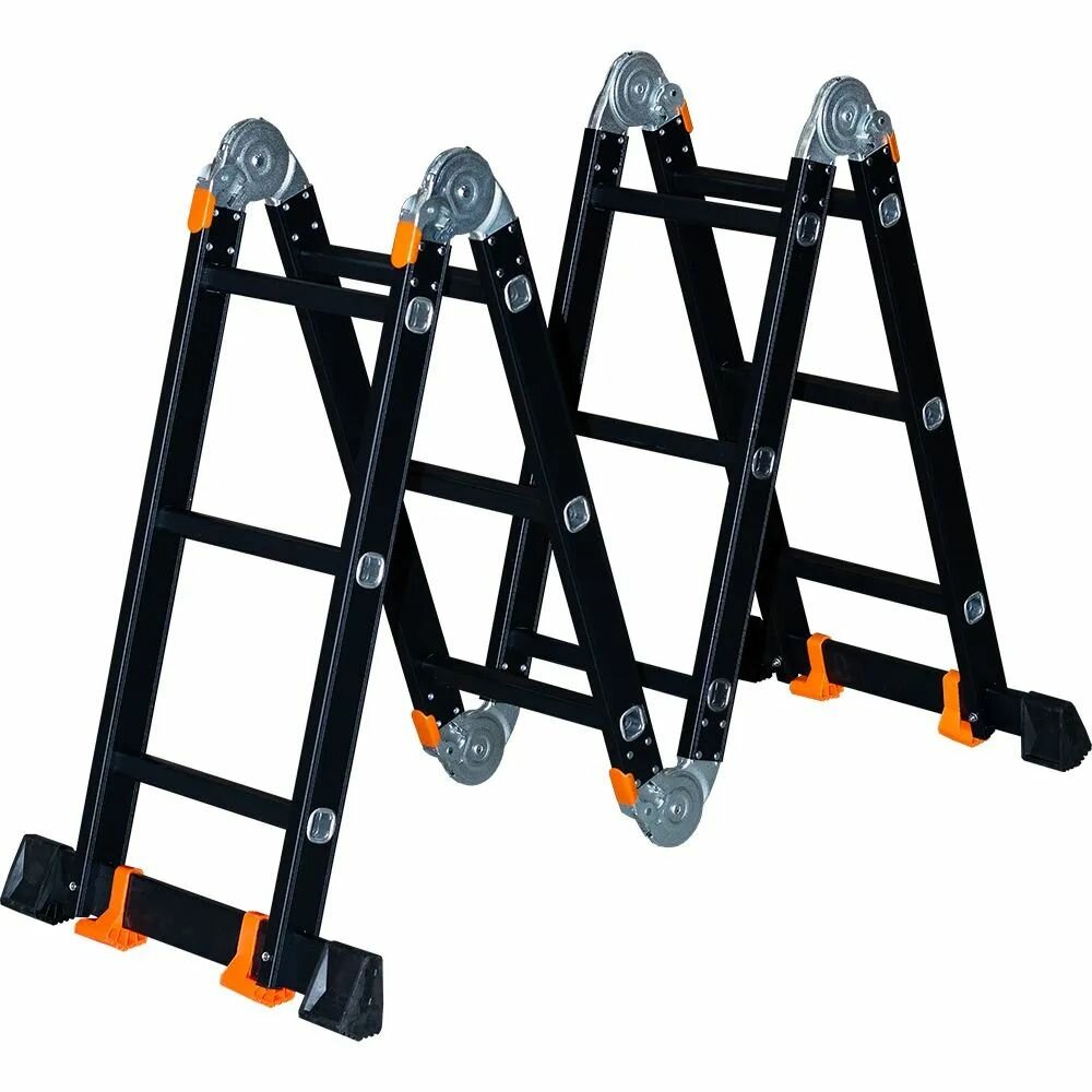 Профессиональная лестница трансформер 4х3 Мастер-Инструмент серия Pro изготавливается из алюминия высокого качества с повышенной устойчивостью к коррозии, что выгодно увеличивает срок эксплуатации лестницы по отношению к современным аналогам. Гарантия 5 лет. Лестница снабжена высокопрочными узлами шарнирных замков «Super Pro» из легированной стали. Это обеспечивает простоту использования лестницы и гарантирует качественную фиксацию шарниров, что влияет на безопасность и удобство при эксплуатации лестницы. Шарнирные замки надёжно впрессованы в направляющий усиленный профиль размером 60х30х1,5 мм и расклёпаны цельнометаллическими заклёпками. Усиленный профиль ступеней 28х28х1,5 мм, обеспечивает высокую стойкость к нагрузкам. Рифленые ступени гарантируют надёжное сцепление стопы с поверхностью. Лестницы Мастер-Инструмент серия Pro входят в премиум сегмент лестниц благодаря повышенной надёжности и качественному крашенному покрытию, которое бережёт лестницу от износа, не оставляет алюминиевого следа на руках и придаёт современный стильный вид вашей лестнице. Максимальная рабочая высота – 4,9 м. (этот параметр определяет высоту, до которой можно свободно дотянуться, стоя на верхней ступени лестницы)Высота приставной лестницы – 3,9 м. Высота в режиме стремянка – 1,75 м. Высота в режиме помост – 0,98 м. Высота в сложенном виде - 0,95 м. Ширина лестницы 350 мм позволяет комфортно проводить работы на любой высоте. Ступени закреплены методом многократной развальцовки, что обеспечивает высокую прочность и долговечность конструкции. Лестница-трансформер Мастер-Инструмент чрезвычайно практична и удобна в хранении и транспортировке. Она быстро и легко складывается, может уместиться в багажнике автомобиля. Габариты лестницы в сложенном состоянии – 950х250х350 мм. Вес на более – 12,5 кг. Максимальная нагрузка на все профессиональные лестницы Мастер-Инструмент - 150 кг. внимание максимально допустимая нагрузка в режиме помост – 120 кг.
