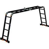 Профессиональная лестница трансформер 4х4 Мастер-Инструмент серия Pro изготавливается из алюминия высокого качества с повышенной устойчивостью к коррозии, что выгодно увеличивает срок эксплуатации лестницы по отношению к современным аналогам. Гарантия 5 лет. Лестница снабжена высокопрочными узлами шарнирных замков «Super Pro» из легированной стали. Это обеспечивает простоту использования лестницы и гарантирует качественную фиксацию шарниров, что влияет на безопасность и удобство при эксплуатации лестницы. Шарнирные замки надёжно впрессованы в направляющий усиленный профиль размером 60х30х1,5 мм и расклёпаны цельнометаллическими заклёпками. Усиленный профиль ступеней 28х28х1,5 мм, обеспечивает высокую стойкость к нагрузкам. Рифленые ступени гарантируют надёжное сцепление стопы с поверхностью. Лестницы Мастер-Инструмент серия Pro входят в премиум сегмент лестниц благодаря повышенной надёжности и качественному крашенному покрытию, которое бережёт лестницу от износа, не оставляет алюминиевого следа на руках и придаёт современный стильный вид вашей лестнице. Максимальная рабочая высота – 5,55 м. (этот параметр определяет высоту, до которой можно свободно дотянуться, стоя на верхней ступени лестницы)Высота приставной лестницы – 4,65 м. Высота в режиме стремянка – 2,29 м. Высота в режиме помост – 1,25 м. одом многократной развальцовки, что обеспечивает высокую прочность и долговечность конструкции. Лестница-трансформер Мастер-Инструмент чрезвычайно практична и удобна в хранении и транспортировке. Она быстро и легко складывается, может уместиться в багажнике автомобиля. Габариты лестницы в сложенном состоянии – 1230х250х350 мм. Вес на более – 13,4 кг. Максимальная нагрузка на все профессиональные лестницы Мастер-Инструмент - 150 кг. Внимание максимально допустимая нагрузка в режиме помост – 120 кг.