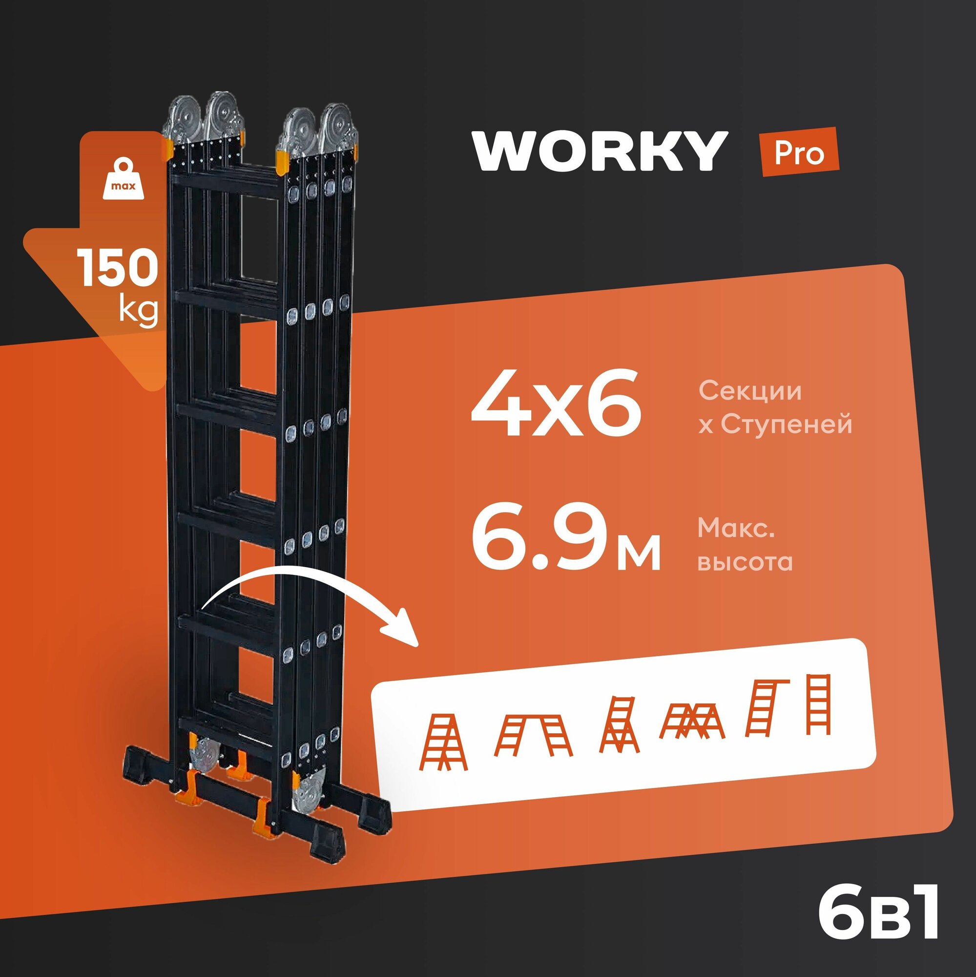 Купить Лестница трансформер 4×6 WORKY Pro, высота 6,9м с доставкой по всей России. Лестница трансформер 4×6 WORKY Pro, высота 6,9м: сравнение цен, характеристики, фото, актуальное наличие и цены.