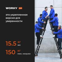 Максимальная нагрузка на все профессиональные лестницы WORKY - 150 кг.