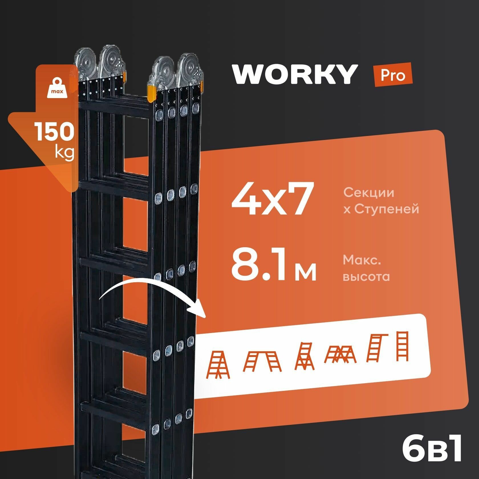 Лестница трансформер 4х7 Pro, высота 8,1м: сравнение цен, характеристики, фото, актуальное наличие и цены.