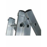 Лестница стремянка алюминиевая изготовлена из алюминиевого сплава. Состоит из 3 секций, в каждой из которых по 10 ступеней. Высота каждой секции 2,65м. В полностью разложенном состоянии (все секции выдвинуты друг из друга) имеет высоту 6,5м, а рабочую высоту 7,5м (с учётом вытянутой руки). В положении стремянки высота 2,5м, а рабочая высота 3,9м. Преимущества: Профессиональная серия. Самый широкий в своем классе профиль 72 мм. Усиленные кронштейны и ступени секций сечением 28х28мм и толщиной 1,5мм! Уникальная по своей надёжности система быстрого раскладывания лестницы одной рукой. Подходит для частого использования. Гарантия 2 года. Лестница алюминиевая трехсекционная - это универсальная раздвижная лестница стремянка, состоящая из 3 секций, в каждой секции 10 ступеней . Многие также называют данный тип лестница телескопическая или лестница трансформер, ввиду возможности её трансформации в разные положения. Её можно использовать в виде приставной лестницы (все три секции раздвинуты в прямую линию) - для работ на стенах, столбах и других вертикальных поверхностях. И в виде лестницы стремянки(перевернутая буква "У") - для потолочных работ, работ в саду и других задач, при выполнении которых лестницу возможно опереть только на горизонтальную поверхность. При этом 3 верхняя секция Длина лестницы увеличивается от минимальной до максимальной с шагом 26 см.