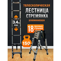 Купить Лестница стремянка телескопическая, 18 ступеней алюминиевая 3,4м с доставкой по всей России. Лестница стремянка телескопическая, 18 ступеней алюминиевая 3,4м: сравнение цен, характеристики, фото, актуальное наличие и цены.