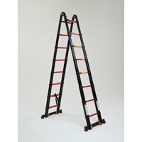Лестница-стремянка телескопическая WORKY BLACK 2.5м/5м 8 ступеней изготовлена по технологиям из алюминия и снабжена высокопрочными шарнирами (замками) из стали. Серия WORKY BLACK отличается ударопрочным покрытием и защитой от коррозии, имеет большие и прочные замки. Она легко транспортируется, без проблем помещается даже в небольшой автомобиль, так как имеет габариты в сложенном виде 96х52х22см.