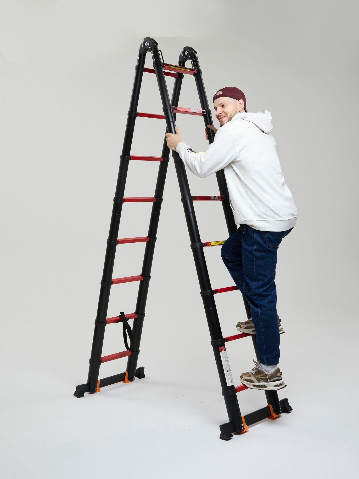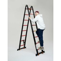 Лестница без усилий раскладывается и мало весит — всего 16,9 кг.