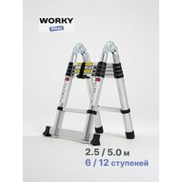 Купить Лестница стремянка WORKY 2,5/5,0м, 6/12 ступеней, телескопическая, стальная с доставкой по всей России. Лестница стремянка WORKY 2,5/5,0м, 6/12 ступеней, телескопическая, стальная: сравнение цен, характеристики, фото, актуальное наличие и цены.