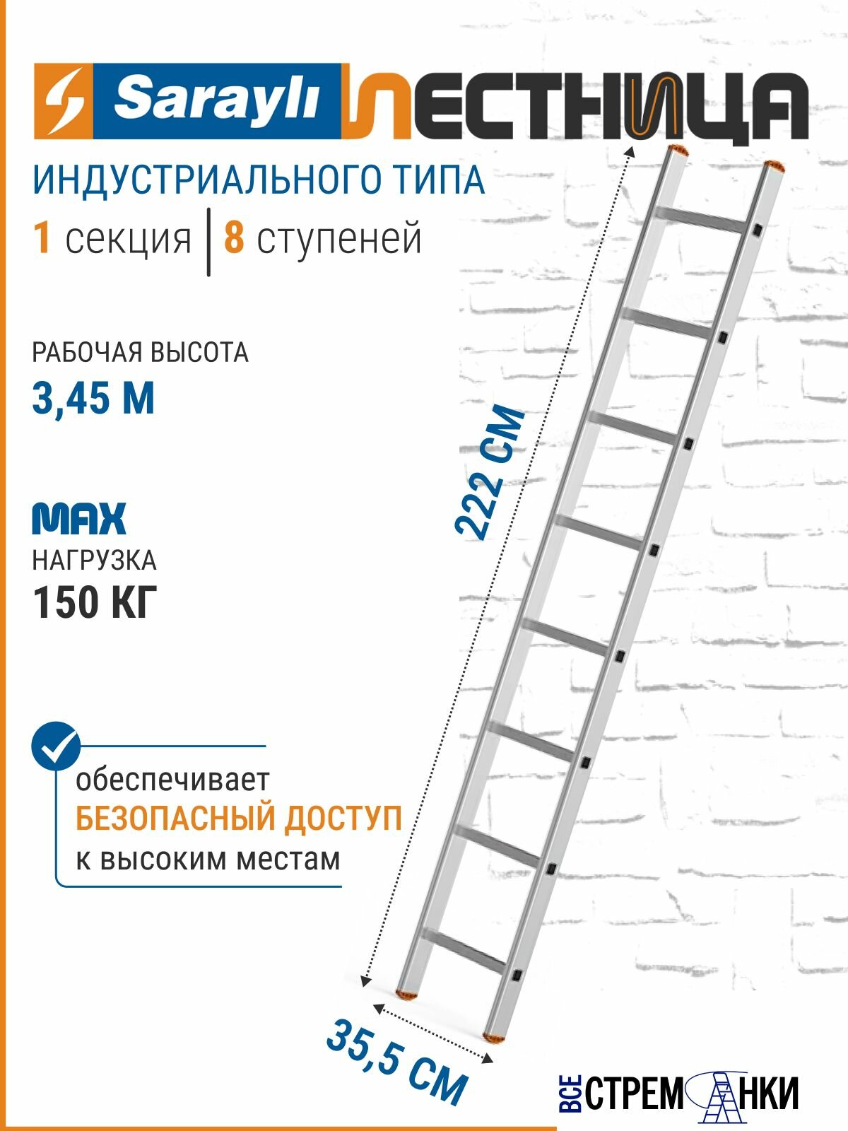 Лестница строительная алюминиевая легкая индустриального типа Sarayli. 3,5 метра 8 ступеней нагрузка 150 кг.: сравнение цен, характеристики, фото, актуальное наличие и цены.