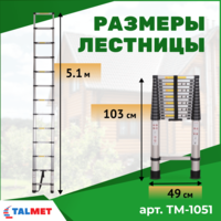 Купить Лестница телескопическая 5.1м Talmet prof ТМ-1051 с доставкой по всей России. Лестница телескопическая 5.1м Talmet prof ТМ-1051: сравнение цен, характеристики, фото, актуальное наличие и цены.