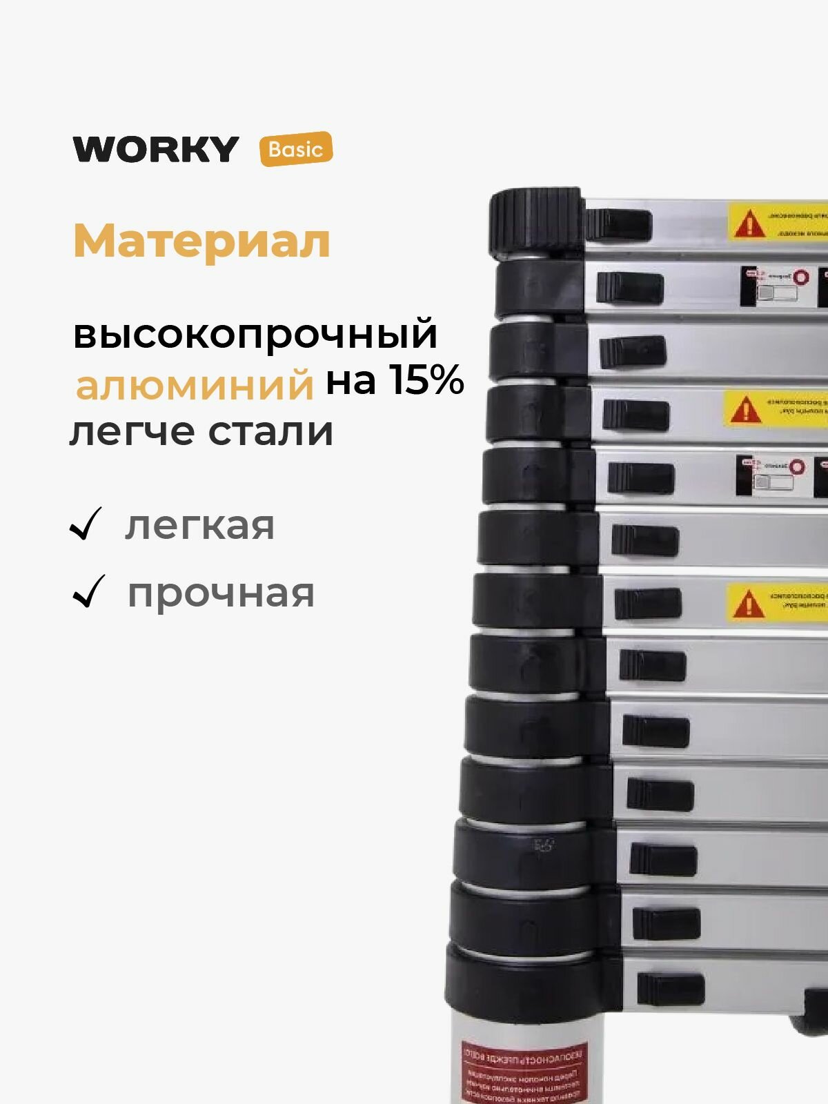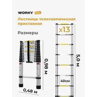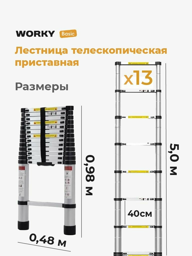 Купить Лестница телескопическая WORKY 5,0 м, 13 ступеней с доставкой по всей России. Лестница телескопическая WORKY 5,0 м, 13 ступеней: сравнение цен, характеристики, фото, актуальное наличие и цены.