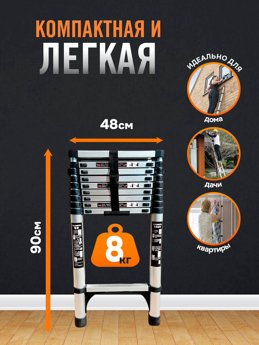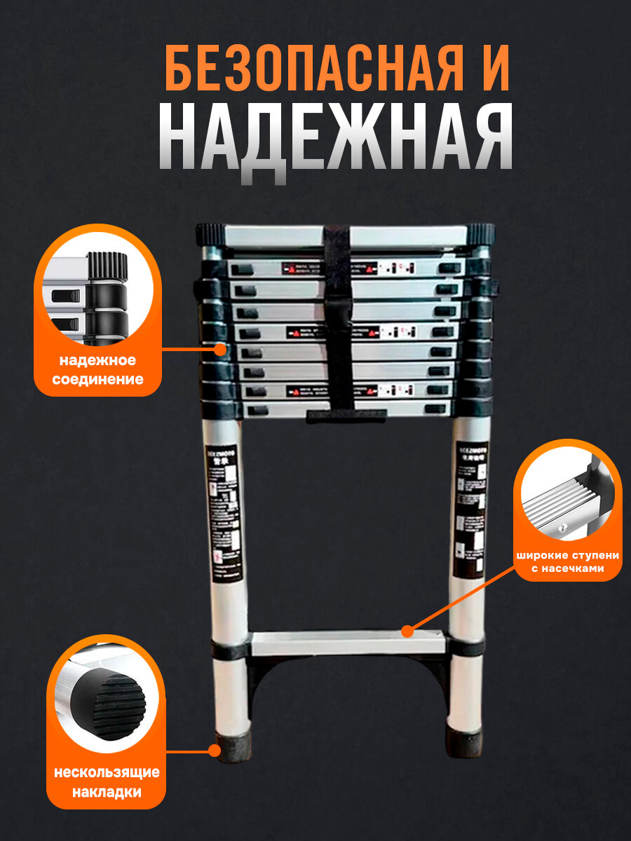 Лестница телескопическая, стремянка/приставная алюминиевая 2,4-4,8м "BEEZMOTO"