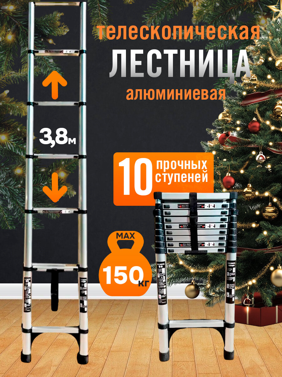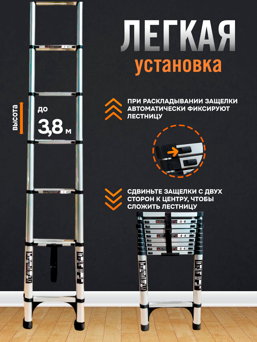 Лестница телескопическая, алюминиевая 3,8 м «BEEZMOTO»