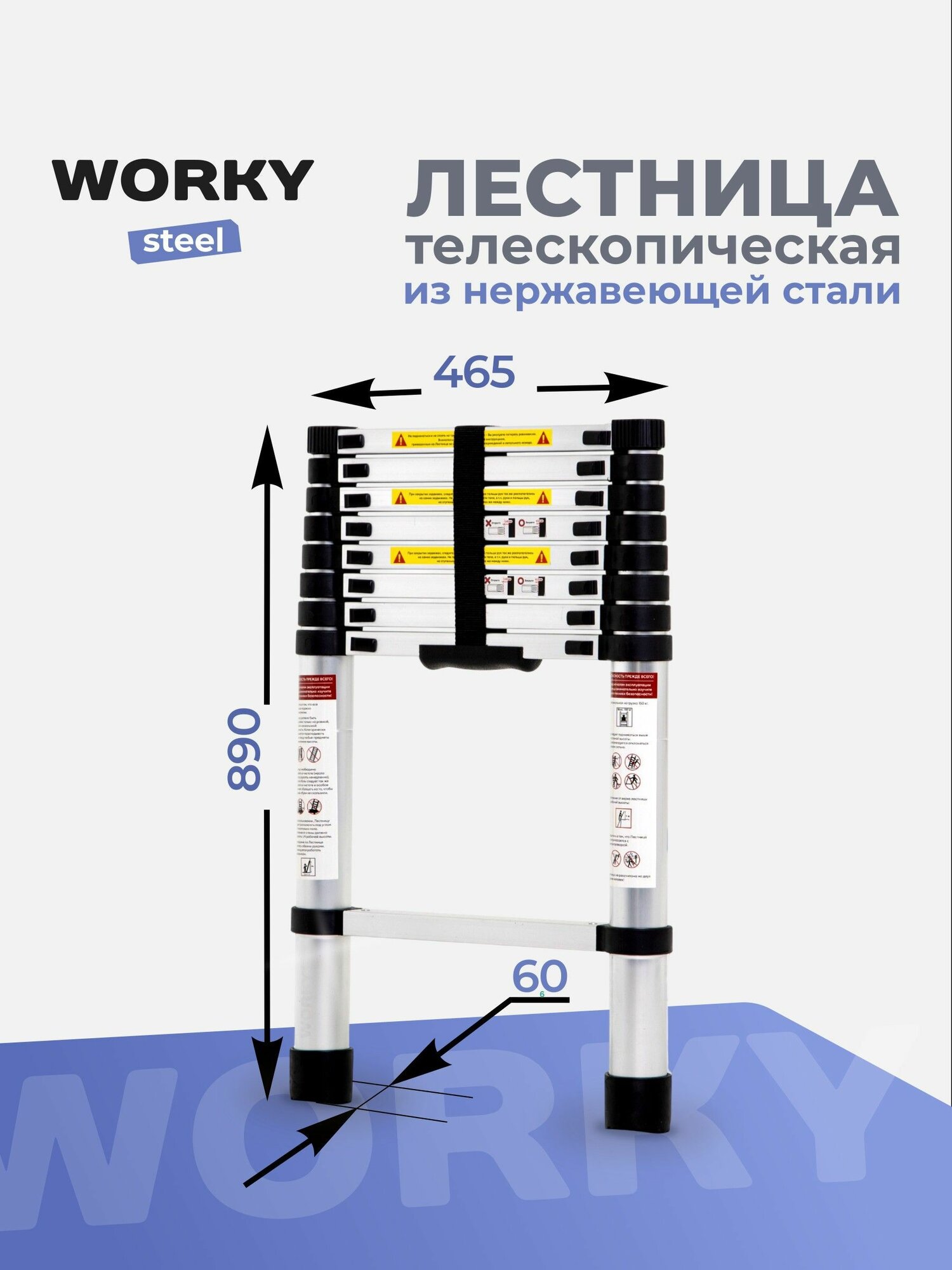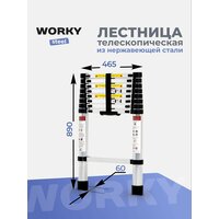 Лестница телескопическая стальная WORKY – идеальный выбор для профессионалов и любителей, стремящихся к качеству и безопасности при выполнении работ на высоте