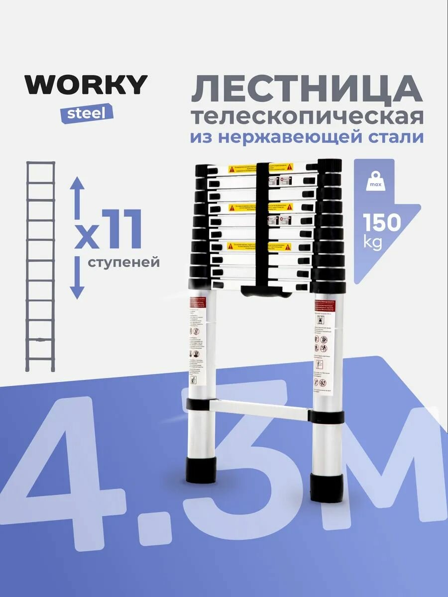 Купить Лестница телескопическая стальная WORKY 4,3м, 11 ступеней с доставкой по всей России. Лестница телескопическая стальная WORKY 4,3м, 11 ступеней: сравнение цен, характеристики, фото, актуальное наличие и цены.