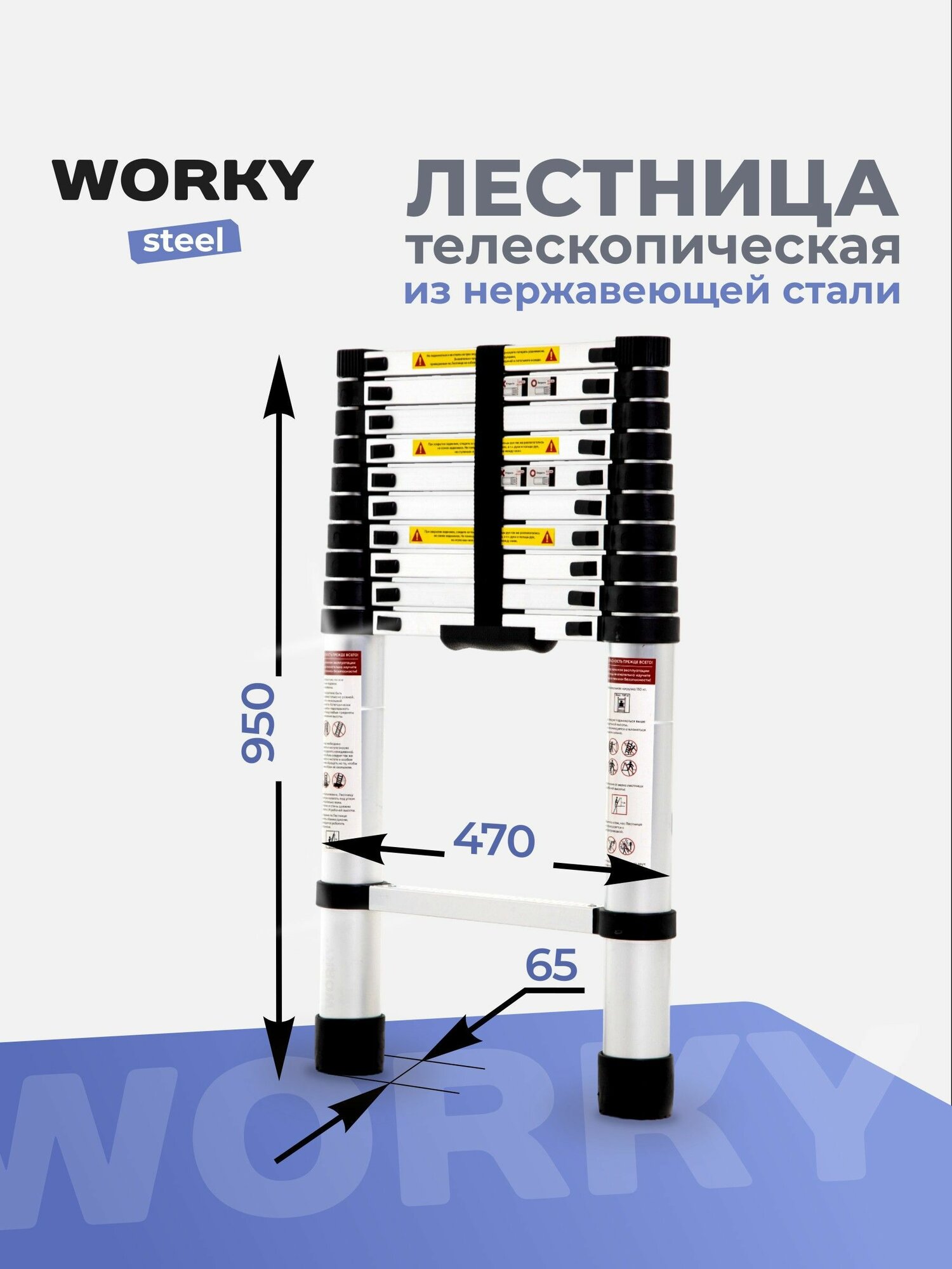 Лестница телескопическая стальная WORKY – идеальный выбор для профессионалов и любителей, стремящихся к качеству и безопасности при выполнении работ на высоте
