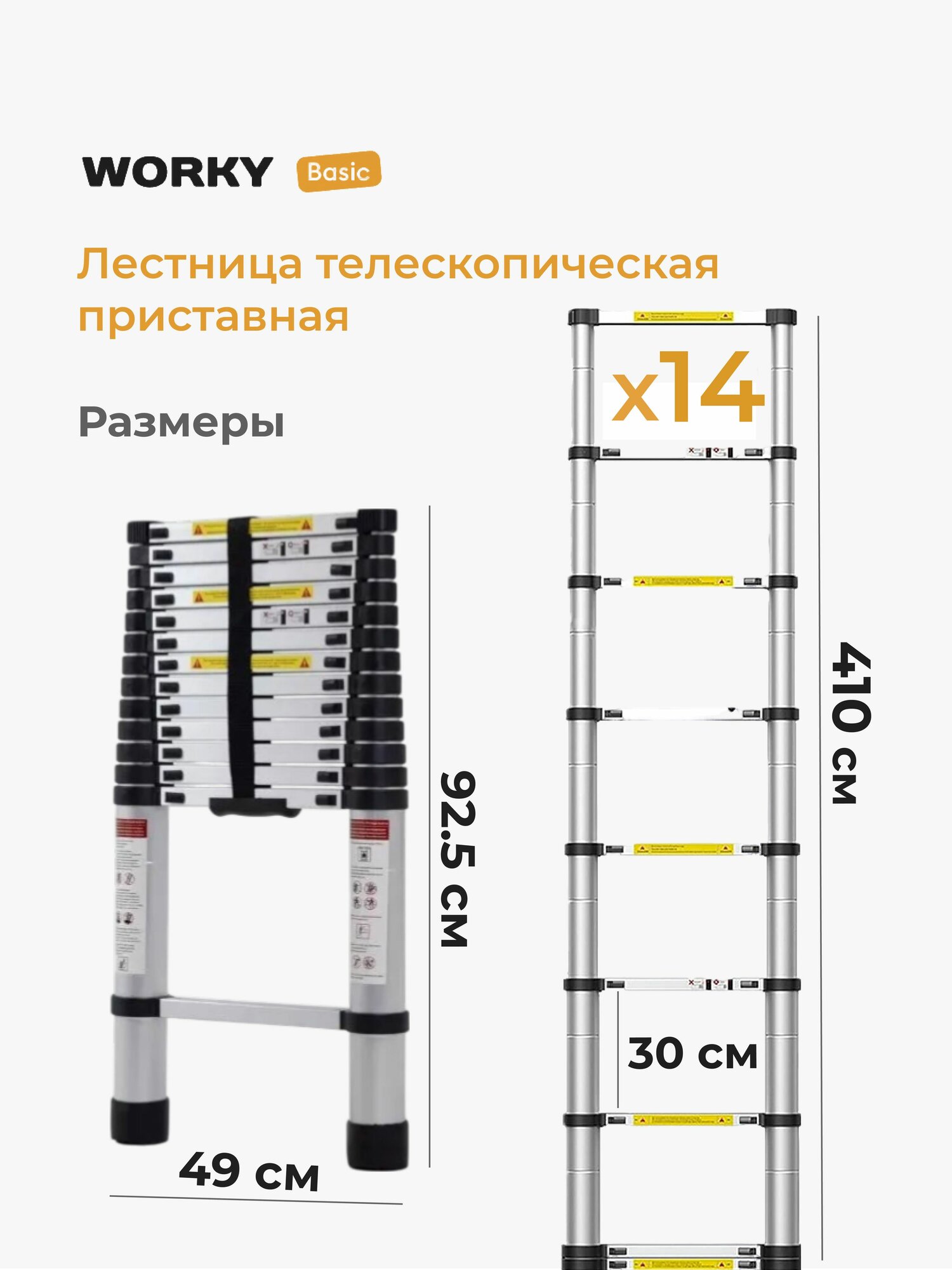 Лестница телескопическая WORKY 4, 1 м, 14 ступеней: сравнение цен, характеристики, фото, актуальное наличие и цены.