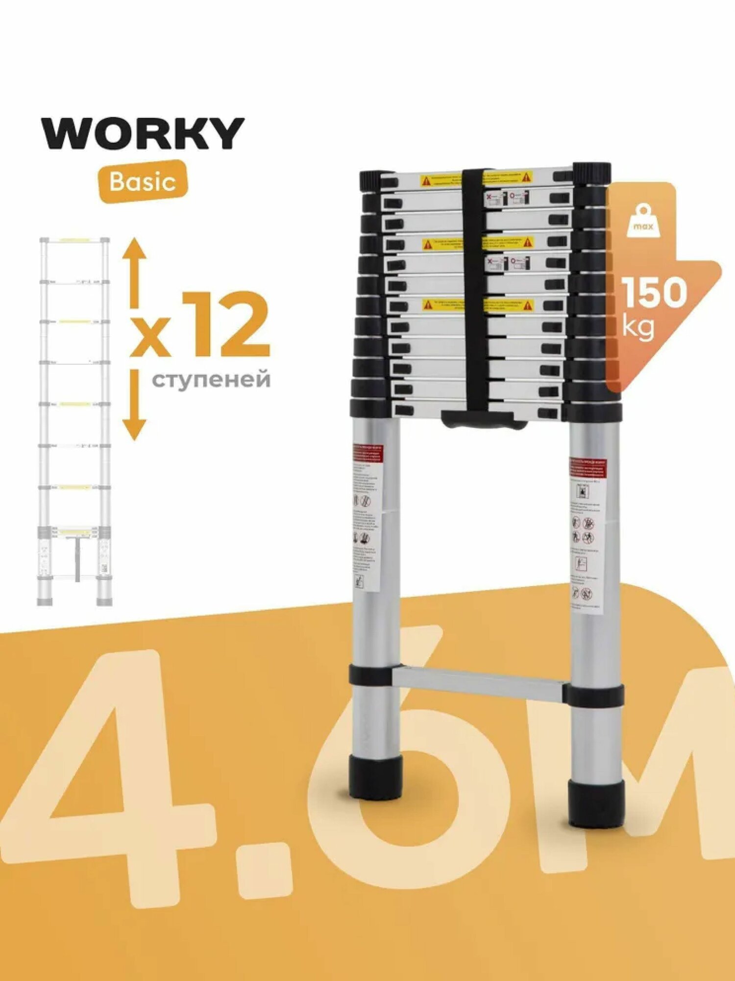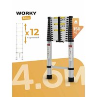 Телескопическая лестница WORKY изготовлена из высококачественного алюминия, что делает её легкой, прочной и устойчивой к коррозии. Это универсальное решение для работы на разной высоте и в сложных условиях.