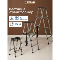 Купить Лестница транформер телескопическая Classmark 3 м, до 150 кг, нержавеющая сталь, стремянка складная с доставкой по всей России.