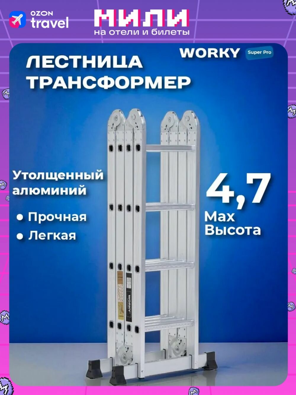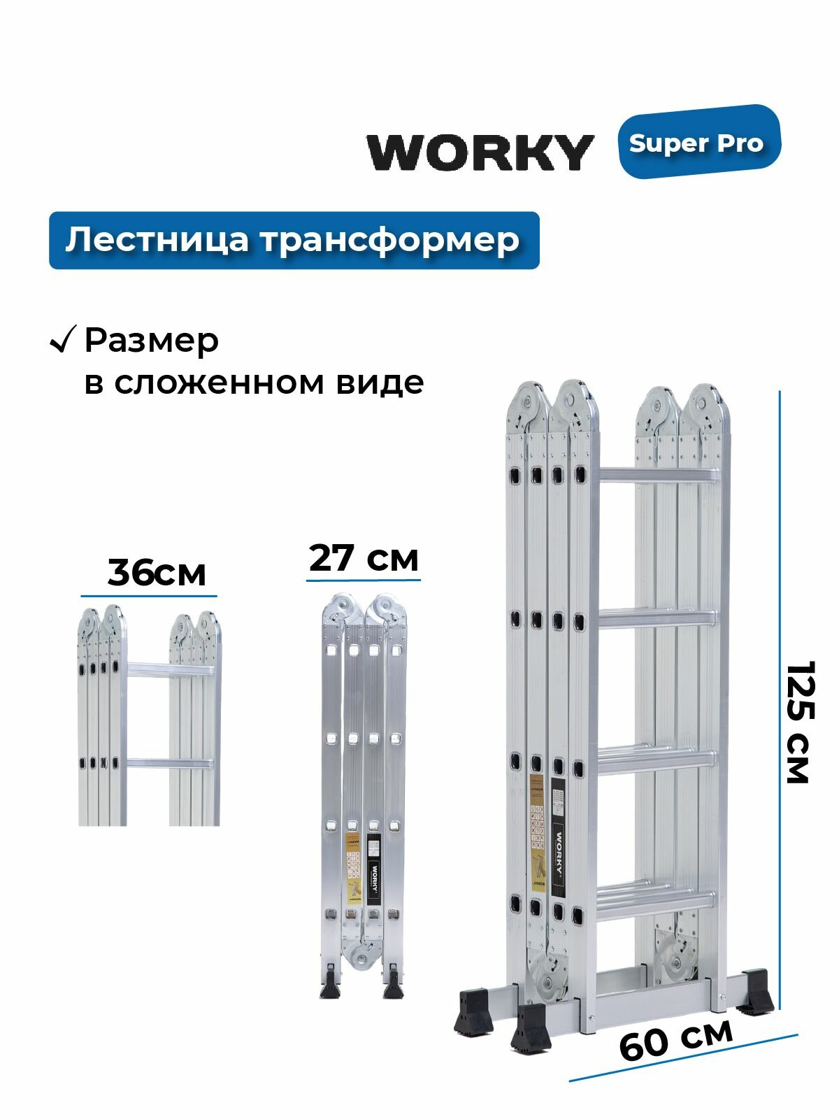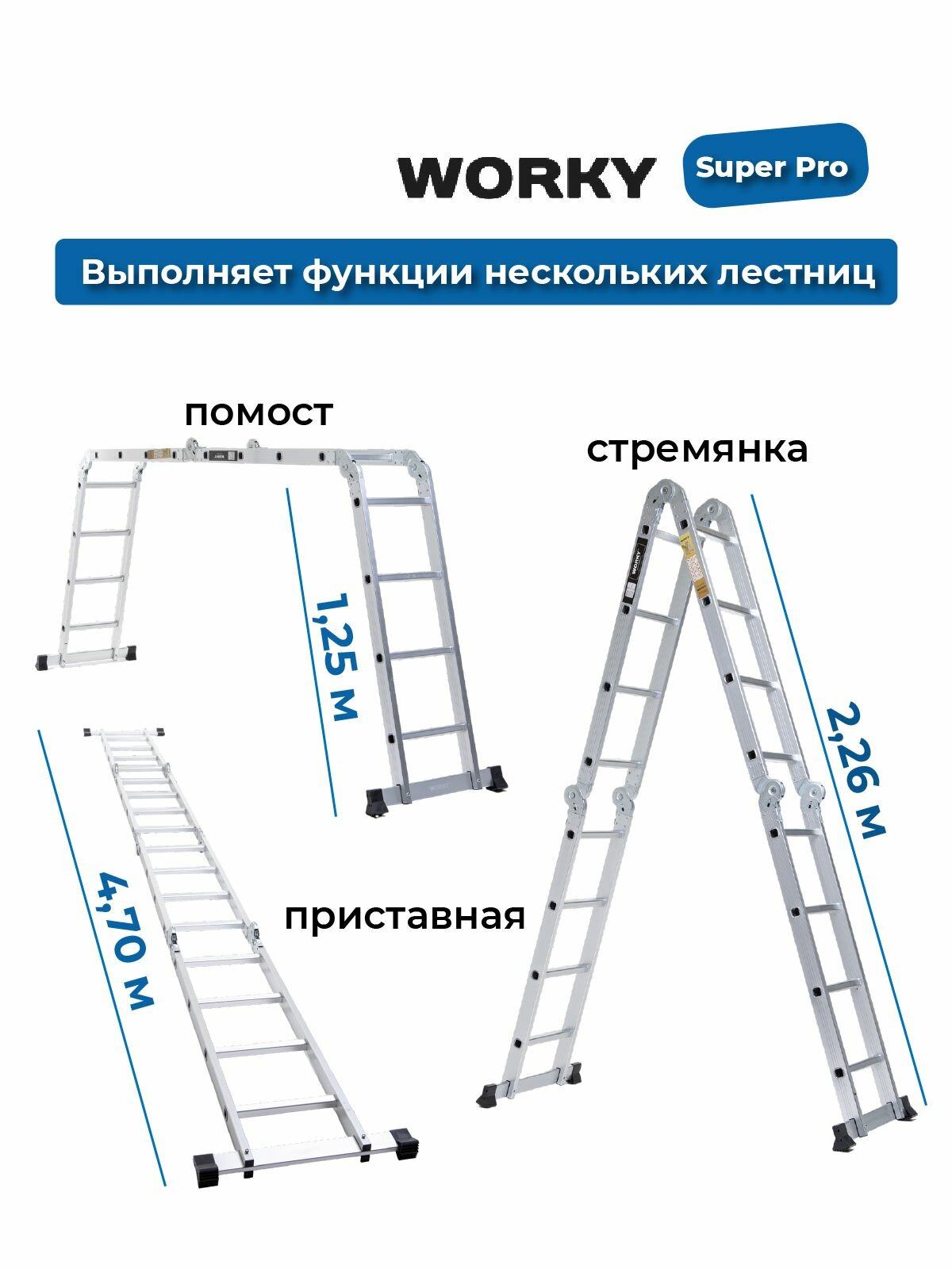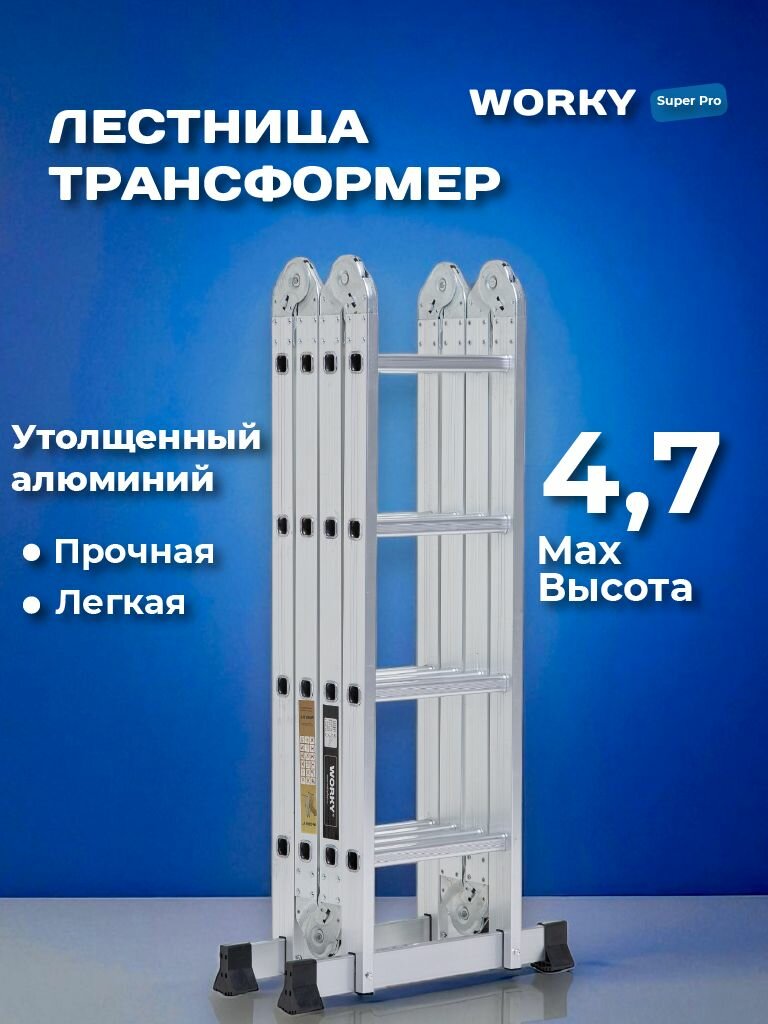 Лестница трансформер 4х4 SuperPro алюминиевая с усиленным замком, высота 4,7 м.: сравнение цен, характеристики, фото, актуальное наличие и цены.