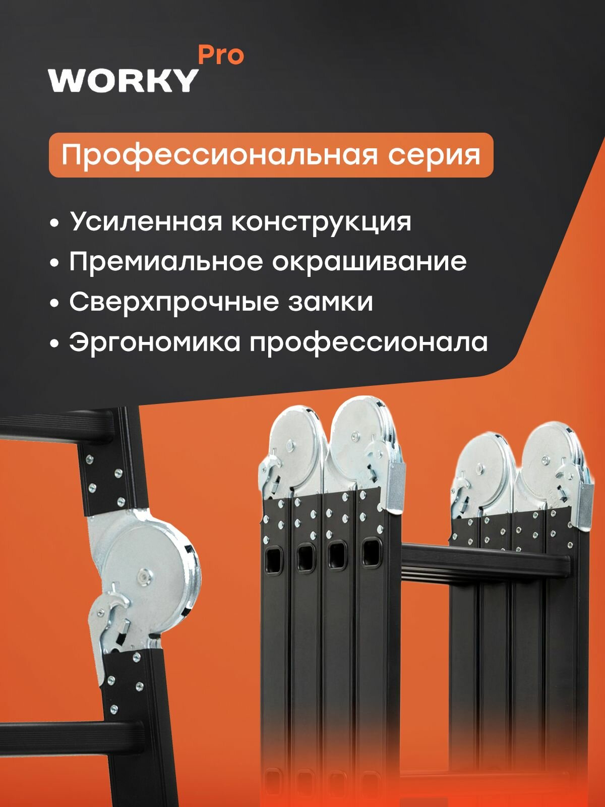Купить Лестница WORKY Pro 4×6, трансформер, 15 секций, складная, 6,9 м, нагрузка до 150кг, черная с доставкой по всей России. Лестница WORKY Pro 4×6, трансформер, 15 секций, складная, 6,9 м, нагрузка до 150кг, черная: сравнение цен, характеристики, фото, актуальное наличие и цены.