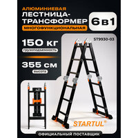 Лестница-трансформер алюминиевая складная 355 см STARTUL Black Line (ST9930-03) - это незаменимый инструмент для проведения ремонтных, строительных и монтажных работ любой сложности. Прочная и надежная конструкция из алюминия толщиной 1.2-1.5 мм обеспечивает долговечность и устойчивость к коррозии. Усиленное шарнирное соединение гарантирует стабильность и безопасность при использовании. Лестница строительная имеет 2 прорезиненных колесика для легкости перемещения и 4 дополнительных прорезиненных стабилизатора для полной устойчивости на разных поверхностях. Лестница складная STARTUL Black Line (ST9930-03) имеет двухстороннюю конструкцию, а за счет своей многофункциональности может использоваться как лестница приставная, стремянка или строительные леса. В сложенном виде лестница стремянка занимает минимум места, что облегчает хранение и транспортировку. Рифленая противоскользящая поверхность ступеней обеспечивает безопасность и комфорт при работе. Максимальная нагрузка на лестницу составляет 150 кг, а ее максимальная рабочая высота - 355 см. В комплект поставки входят: лестница алюминиевая, 2 колесика, 2 траверсы, 4 прорезиненных башмака и 4 оранжевых прорезиненных стабилизатора. Лестница трансформер STARTUL Black Line (ST9930-03) - это надежная, удобная и многофункциональная лестница, которая станет вашим помощником при выполнении различных строительных и ремонтных работ.