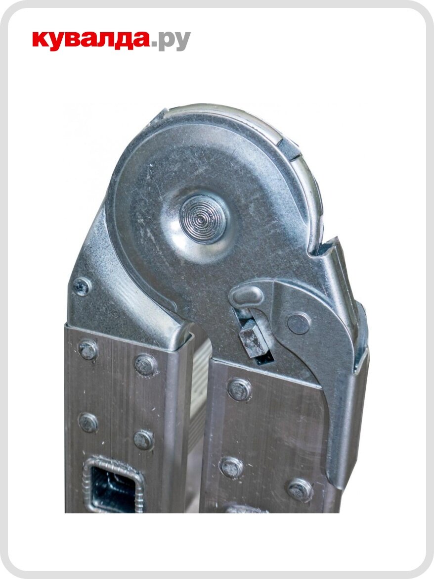 Лестница изготовлена из алюминия, что делает ее легкой и прочной. Алюминиевый материал также обеспечивает долговечность и устойчивость к коррозии.