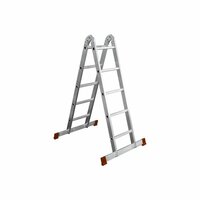 Алюминиевая лестница трансформер, компактная и удобная для перевозок. Усиленный шарнирный механизм. В рабочем положении лестница трансформируется в следующие варианты: лестница приставная, лестница свободностоящая. Конструкция имеет надежную фиксацию шарниров, исключающую самопроизвольное складывание колен. Лестницы-трансформеры имеют надежное крепление ступенек к тетивам. Опорные концы тетив лестниц имеют башмаки из нескользящего материала для предотвращения возможности сдвига и опрокидывания во время работы. Опорная поверхность ступенек имеет противоскользящее исполнение. Конструкция лестниц-трансформеров обеспечивает правильное и свободное складывание-раскладывание во все варианты трансформации.