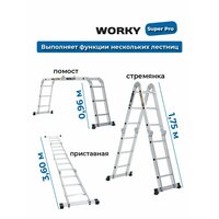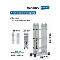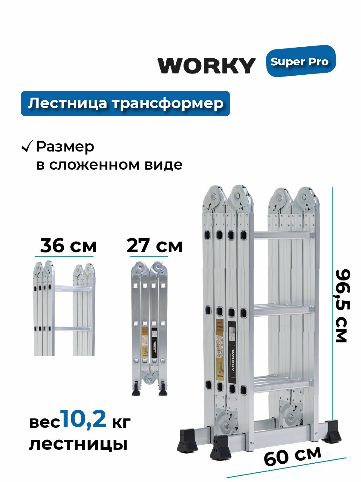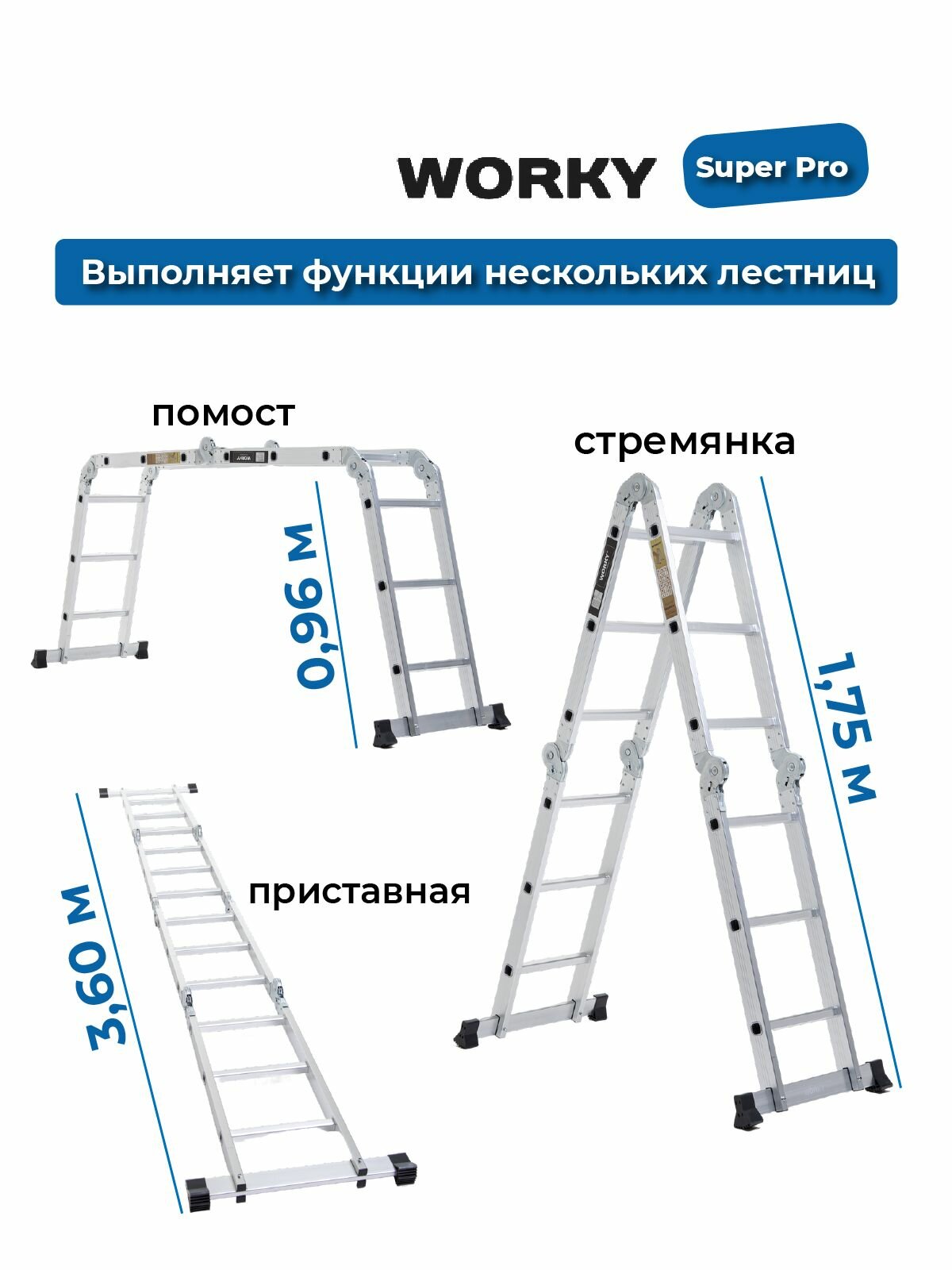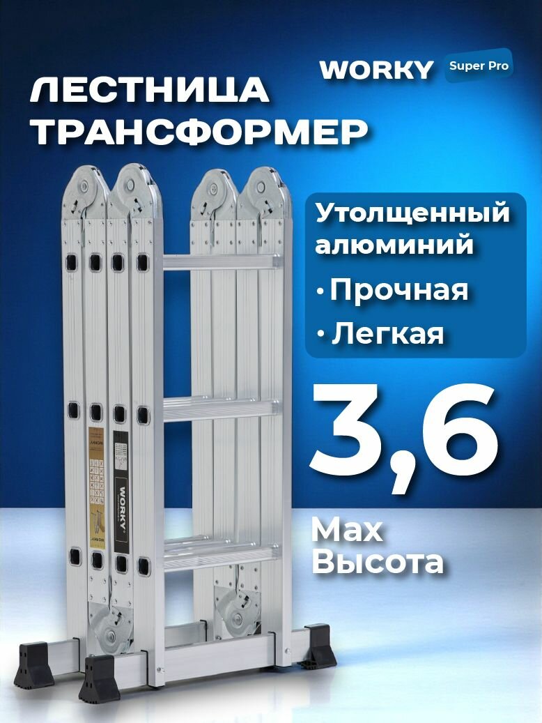 Лестница трансформер 4х3 SuperPro алюминиевая с усиленным замком, высота 3,6 м.: сравнение цен, характеристики, фото, актуальное наличие и цены.