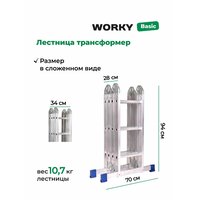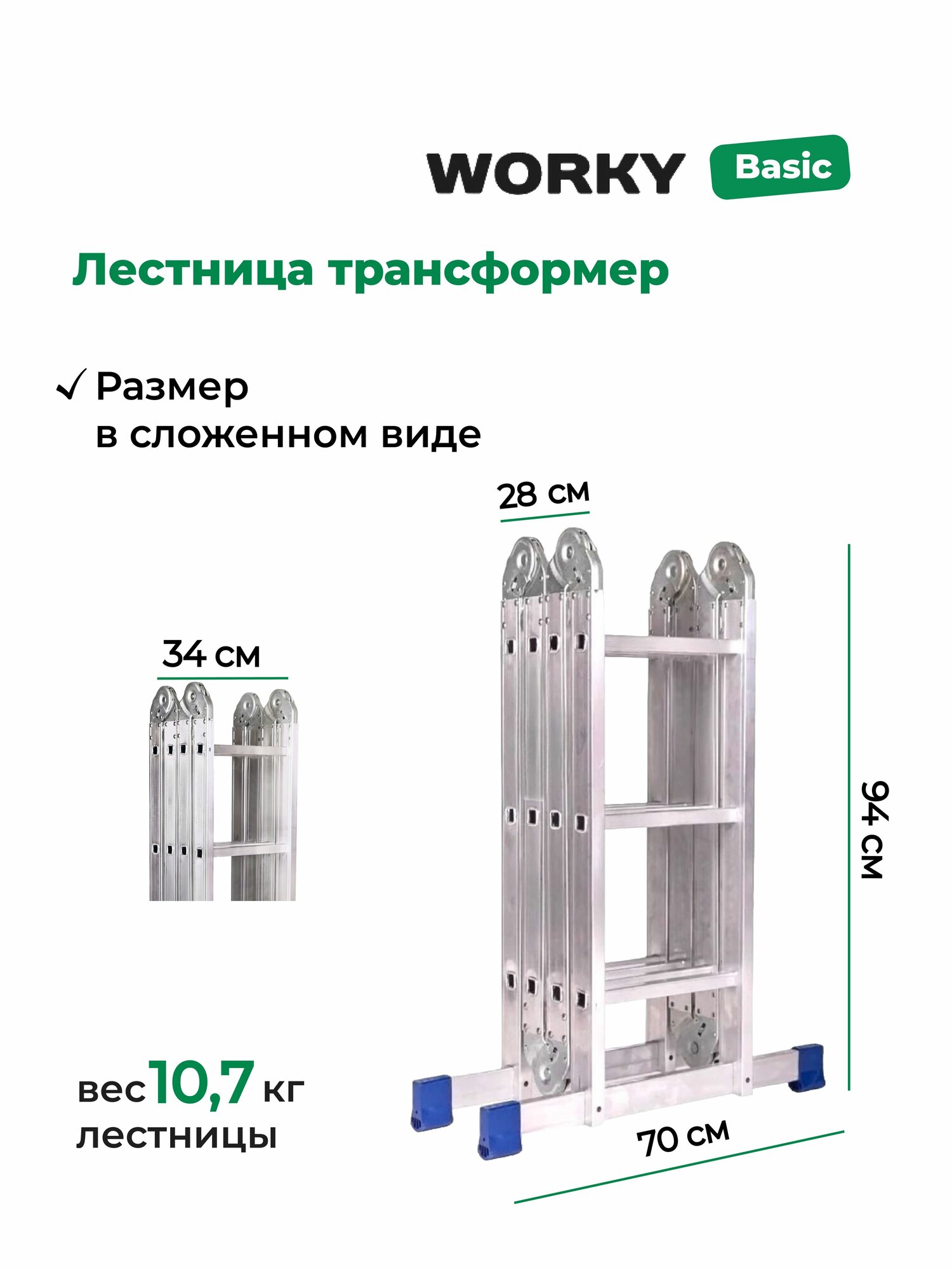 Лестница трансформер стремянка 4х3 WORKY, высота 3,53 м: сравнение цен, характеристики, фото, актуальное наличие и цены.