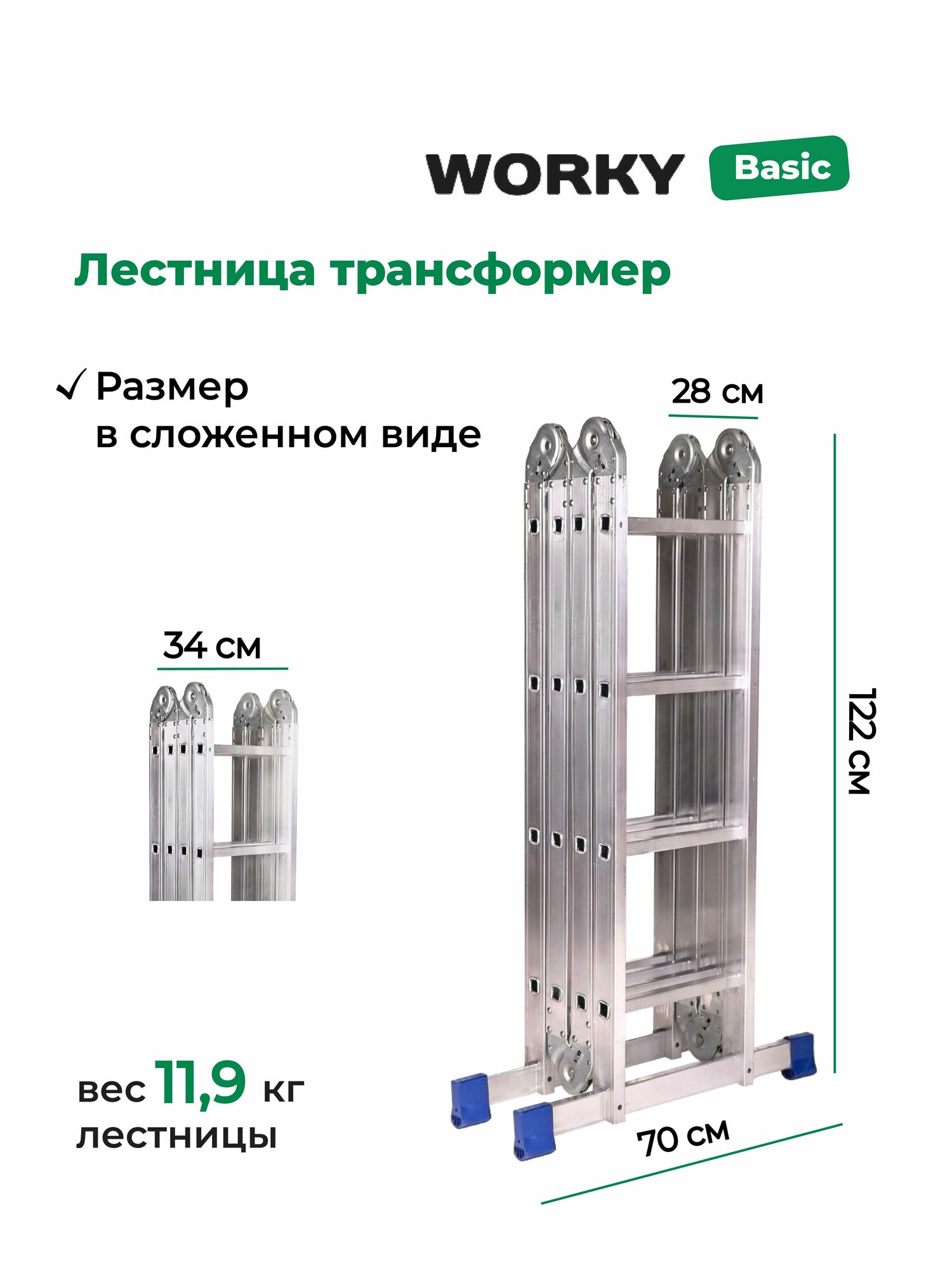 Лестница трансформер стремянка 4х4 WORKY, высота 4,65 м: сравнение цен, характеристики, фото, актуальное наличие и цены.