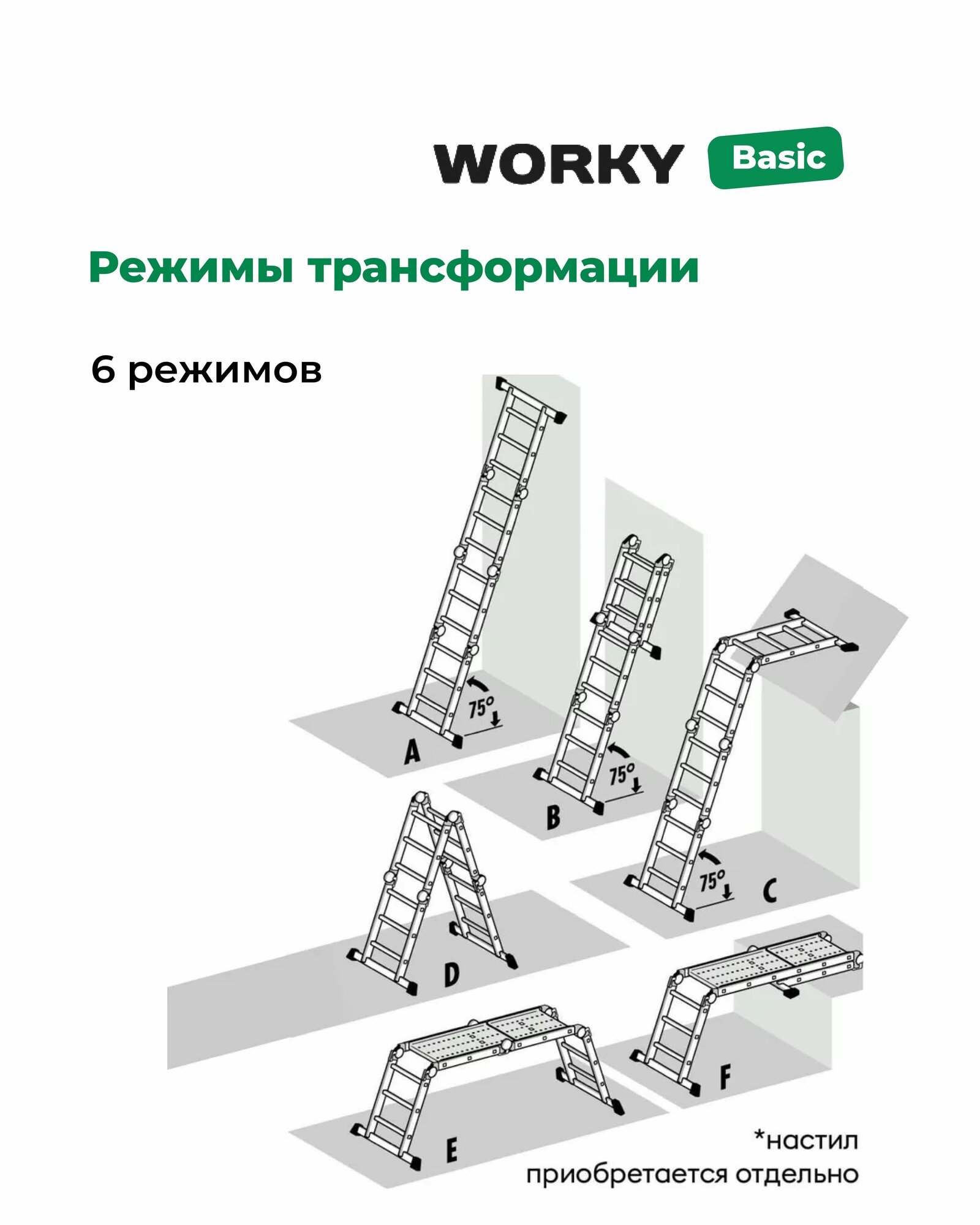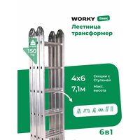 Купить Лестница трансформер стремянка 4х6 WORKY алюминиевая, высота 6,8м с доставкой по всей России. Лестница трансформер стремянка 4х6 WORKY алюминиевая, высота 6,8м: сравнение цен, характеристики, фото, актуальное наличие и цены.