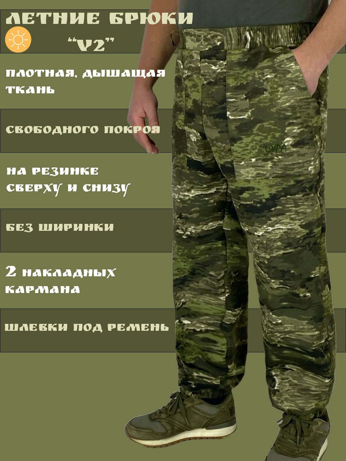 Летние камуфлированные брюки V2 с карманами для рыбалки , работы и туризма из плотного материала: сравнение цен, характеристики, фото, актуальное наличие и цены.