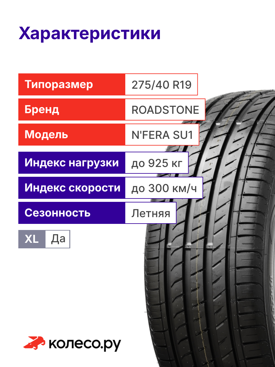 Шина Роудстоун NFERA SU1 R19 275 40 105 Y: сравнение цен, характеристики, фото, актуальное наличие и цены.