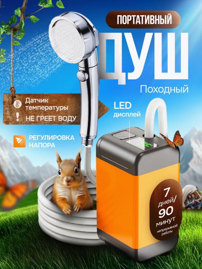 Летний душ, походный душ для кемпинга и дачи, портативный душ с насосом туристический, душ аккумуляторный: сравнение цен, характеристики, фото, актуальное наличие и цены.
