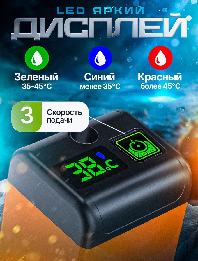 | Функции и особенности | индикатор температуры, регулировка расхода воды, аккумуляторный душ, душ для дачи, летний душ, походный душ |