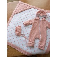 Купить Летний комплект из муслина на выписку и прогулку, 3 предмета, 62 размер (от 0 до 3 мес), пудровый, MAMINY ZAPISKY с доставкой по всей России.