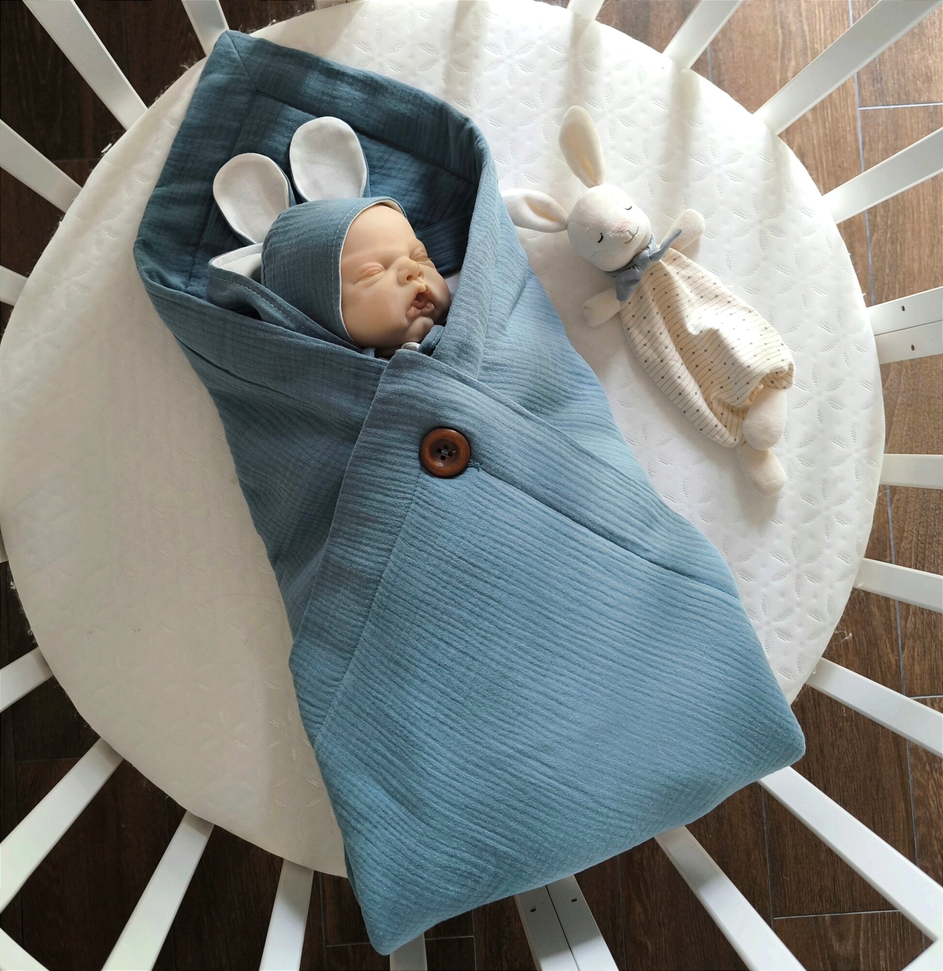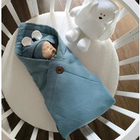 Купить Летний комплект из муслина на выписку и прогулку, 3 предмета, 62 размер (от 0 до 3 мес), сине-зеленый, MAMINY ZAPISKY с доставкой по всей России.