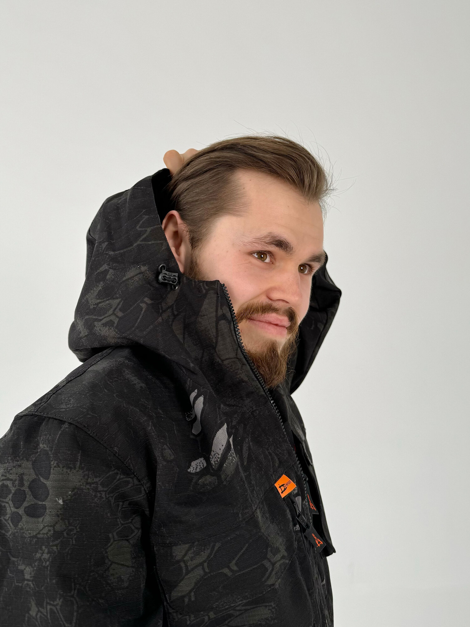 Размер капюшона регулируется резинкой с фиксатором. Манжеты на рукавах с липучкой, что позволяет настроить размер рукава.