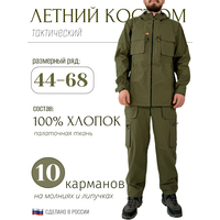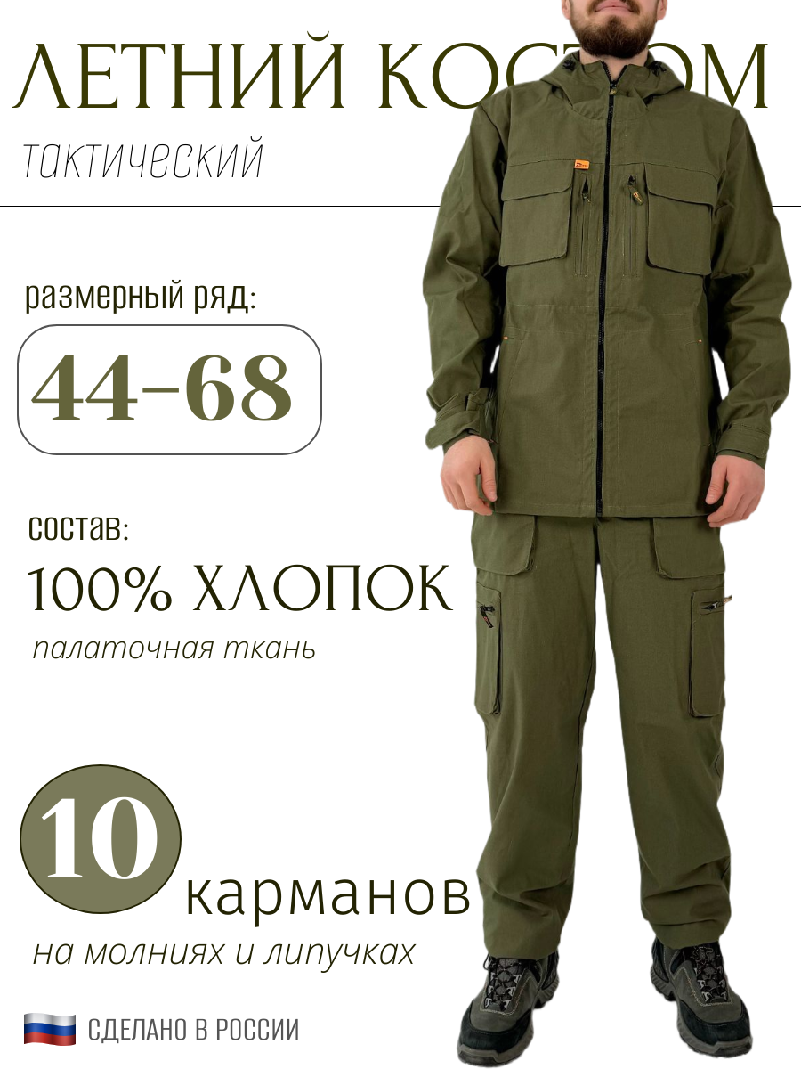 Основа — ткань Смесовая. Это приятный телу, дышащий материал. На куртке и брюках 10 карманов на липучках и молниях, чтобы ключи и документы были в надежном месте.
