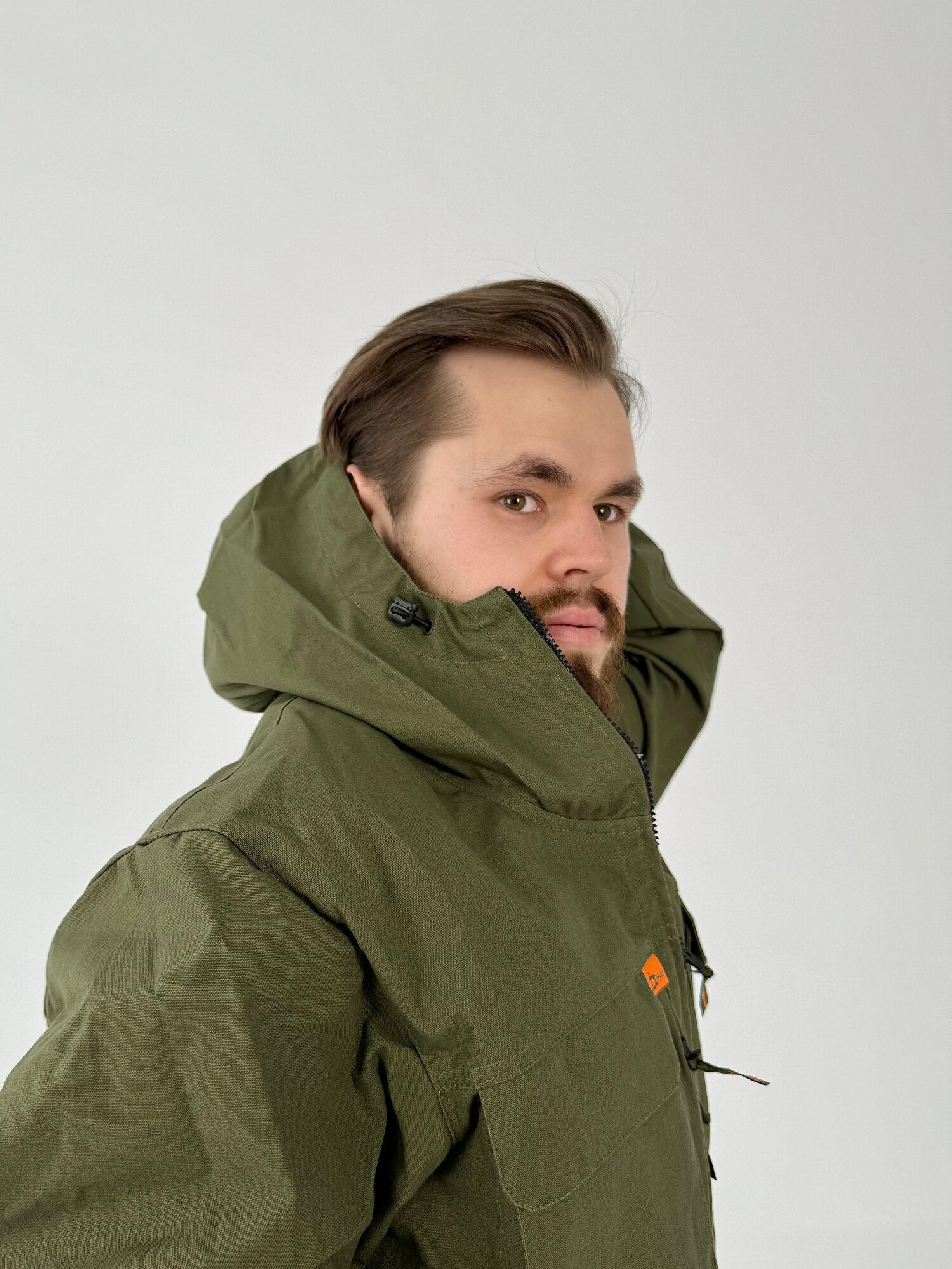 Размер капюшона регулируется резинкой с фиксатором. Манжеты на рукавах с липучкой, что позволяет настроить размер рукава.