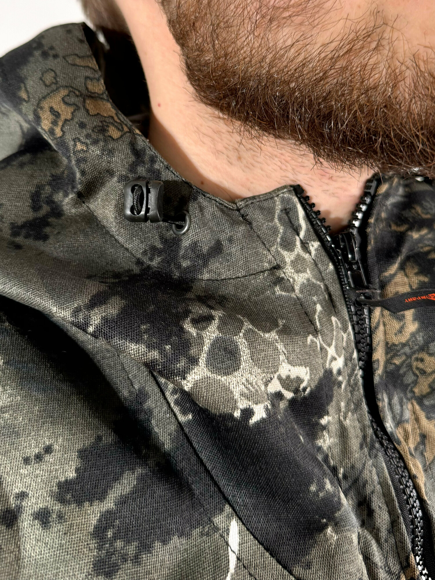 Размер капюшона регулируется резинкой с фиксатором. Манжеты на рукавах с липучкой, что позволяет настроить размер рукава.