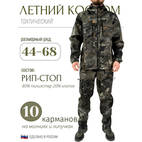 Основа — ткань Смесовая. Это приятный телу, дышащий материал. На куртке и брюках 10 карманов на липучках и молниях, чтобы ключи и документы были в надежном месте.