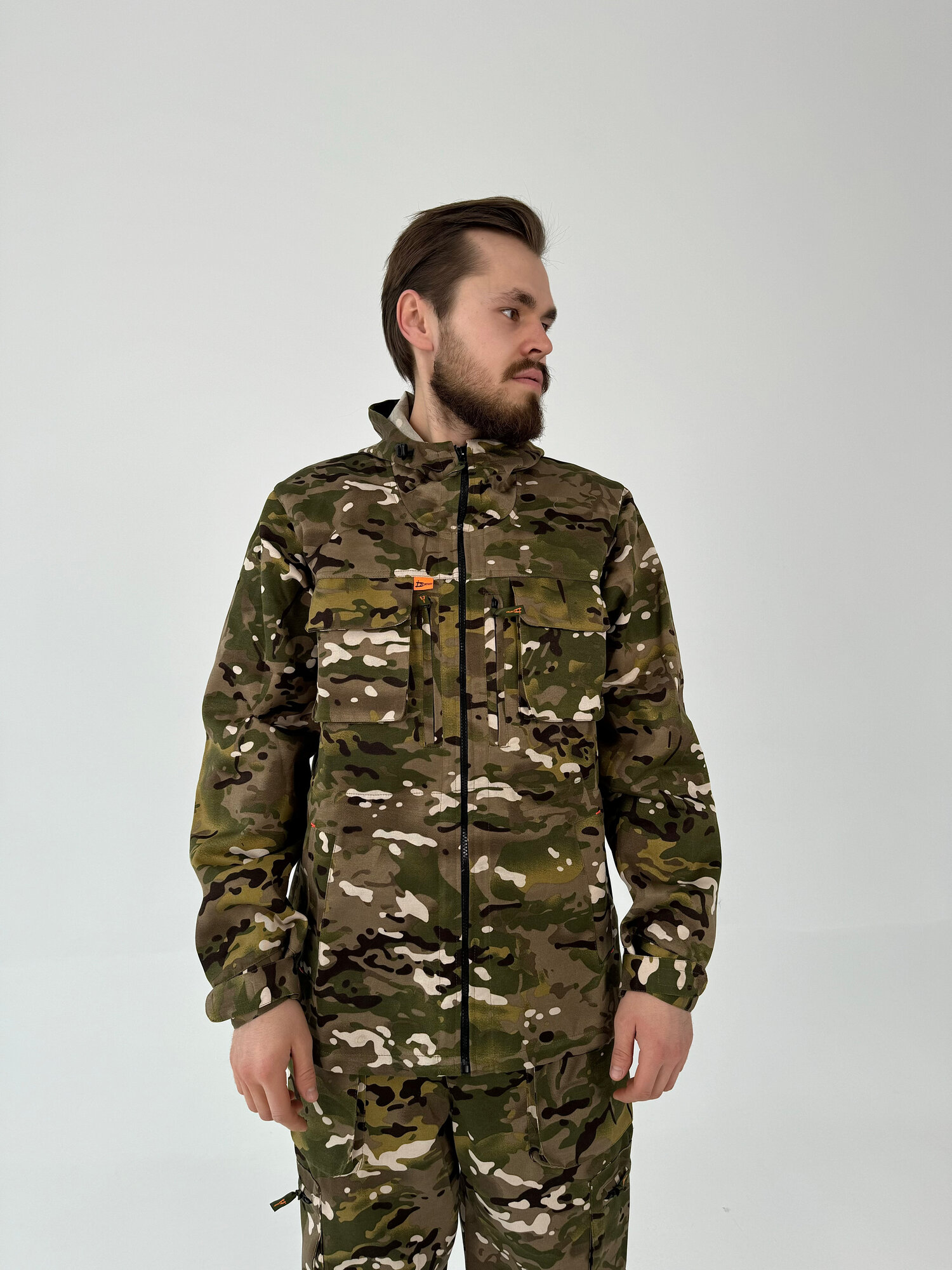 Основа — ткань Смесовая. Это приятный телу, дышащий материал. На куртке и брюках 10 карманов на липучках и молниях, чтобы ключи и документы были в надежном месте.