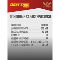 Шины летние WestLake Z-107 245/40 R18 XL 97W: сравнение цен, характеристики, фото, актуальное наличие и цены.