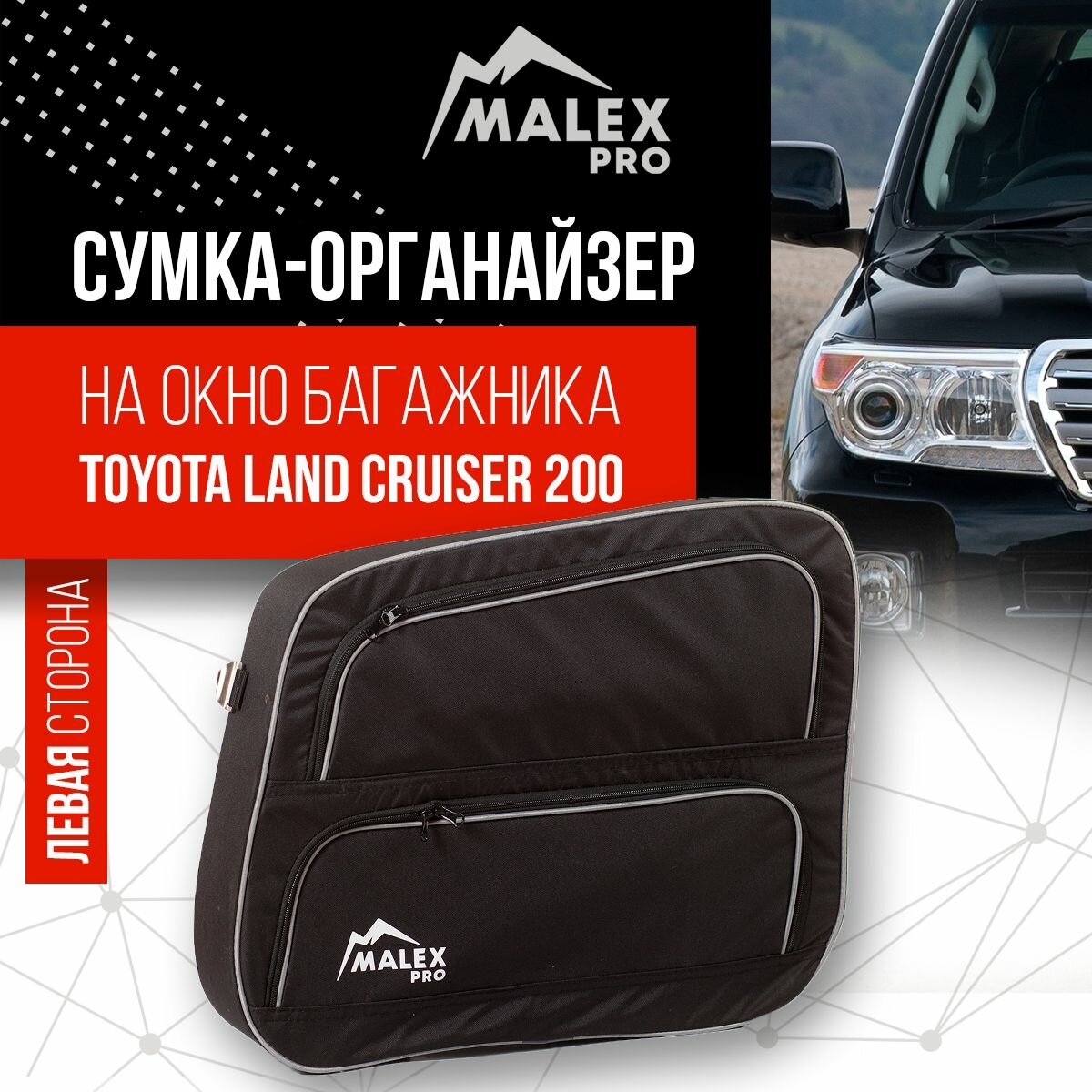 Купить Левая сумка на окна багажника Toyota Land Cruiser 200, черный с серой окантовкой тюнинг Тойота Ленд Крузер 200 от Malex-pro с доставкой по всей России.