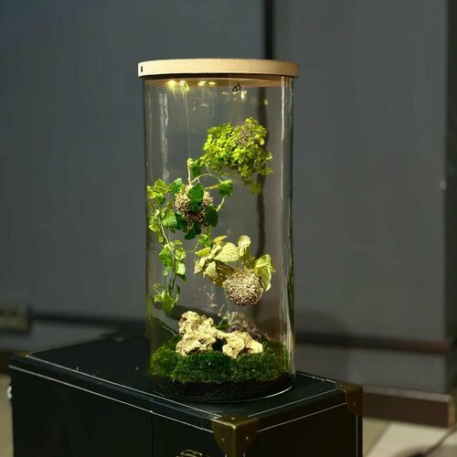 • Эксклюзивная декоративная подсветка встроена в крышку и работает автономно до 14 часов. Она легко заряжается всего за один час и добавляет особую атмосферу в любое помещение. Ваш флорариум будет светиться, создавая уют и ощущение природы в вашем интерьере.