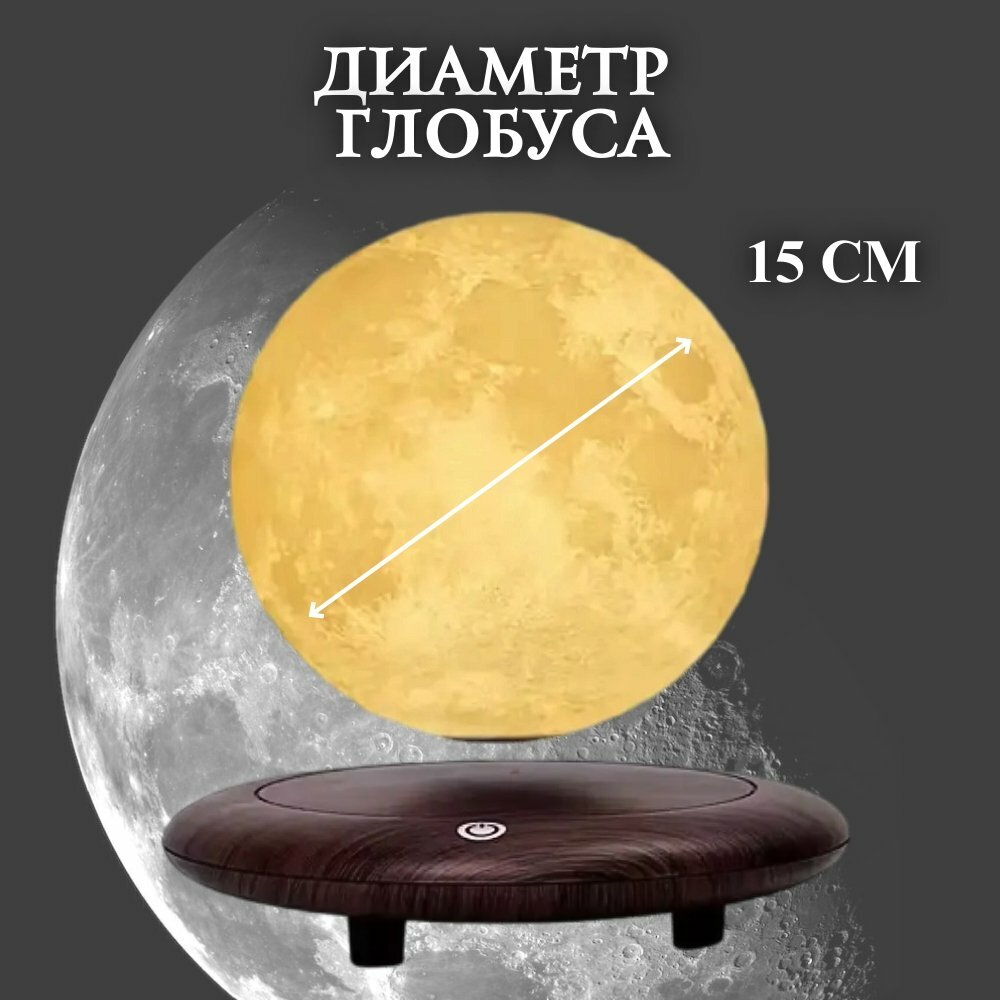 Левитирующий глобус Луны — это уникальный и завораживающий предмет декора, который станет прекрасным дополнением к любому интерьеру. Диаметр глобуса составляет 14 см, что делает его заметным элементом декора. Одной из главных особенностей глобуса является его способность левитировать и вращаться. Это создаёт иллюзию настоящей Луны, парящей в воздухе. Глобус имеет два режима подсветки: тёплый и холодный свет. Вы можете выбрать тот режим, который больше всего соответствует вашему настроению. Подсветка управляется сенсорными кнопками, что делает использование глобуса ещё более удобным. Работает глобус от сети, что обеспечивает его стабильность и долговечность.