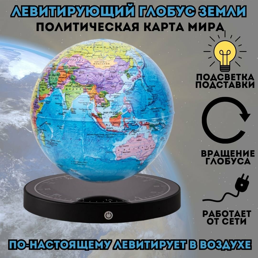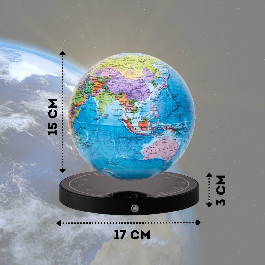 Левитирующий политический глобус от бренда GlobusOff подойдет под любой интерьер дома или офиса и станет стильным украшением рабочего стола Вашего кабинета. Глобус по-настоящему парит в воздухе с помощью магнитной технологии и вращается на 360 градусов, в любую сторону. Вращение задается рукой. Летающий глобус Земли с политической картой будет оригинальным подарком коллегам, друзьям и близким.