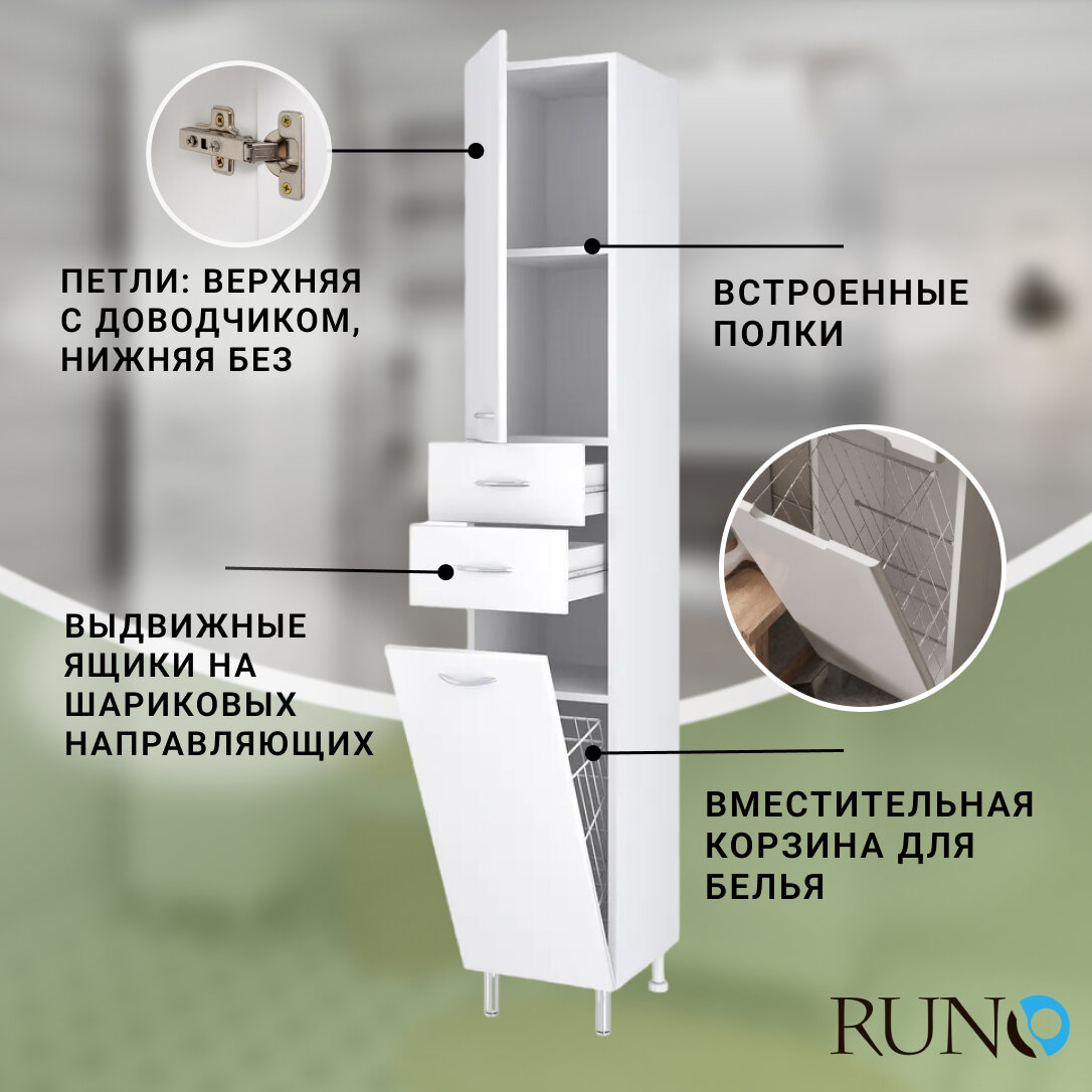 Купить Шкаф в ванную пенал напольный Руно 40, левый, с корзиной для белья с доставкой по всей России. Шкаф в ванную пенал напольный Руно 40, левый, с корзиной для белья: сравнение цен, характеристики, фото, актуальное наличие и цены.