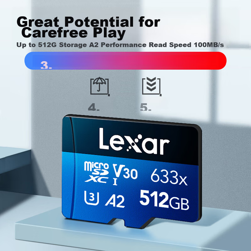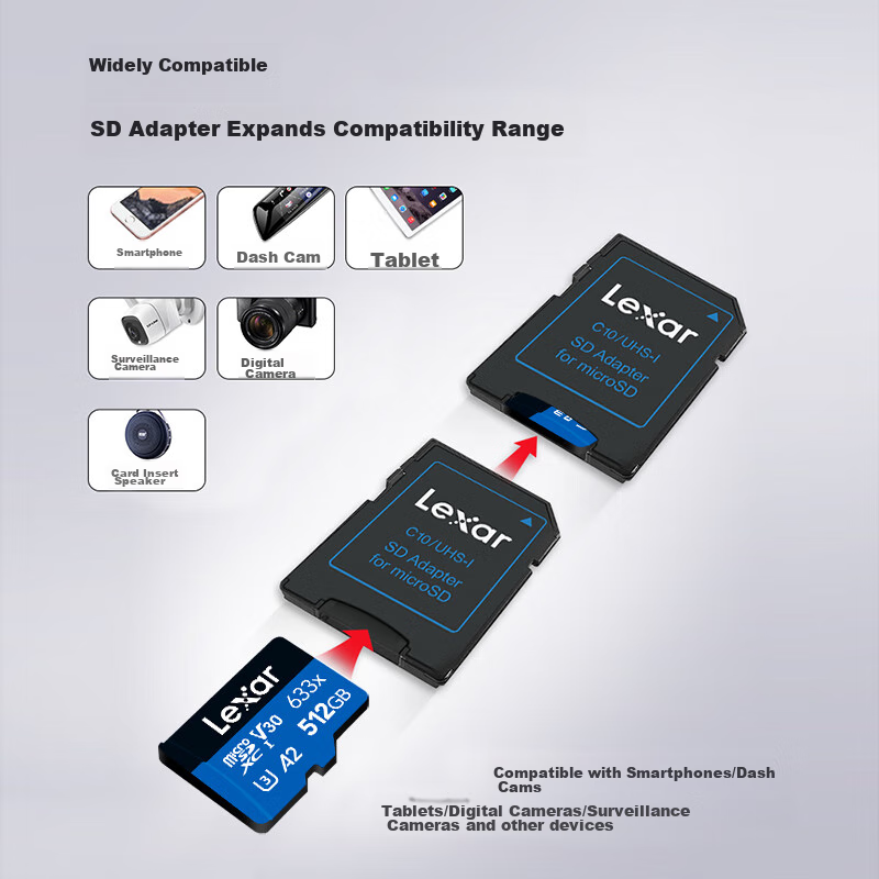 Купить Lexar 512GB TF (MicroSD) Memory Card, C10 U3 V30 A2 High-Speed Memory Card, Read Speed 100MB/s, Durable And Stable (633x) с доставкой по всей России.